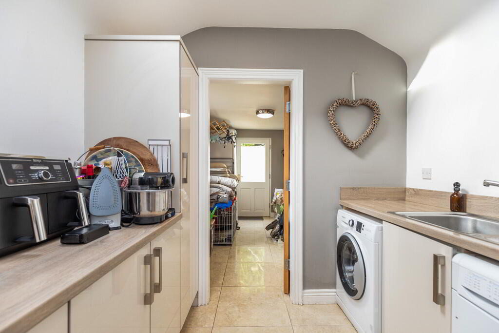 Additional accommodation includes a practical utility room and a convenient store room. Outside, a generous gravel driveway provides ample off street parking for several cars, while the enclosed rear garden offers a private patio area - ideal for outdoor dining and entertaining.