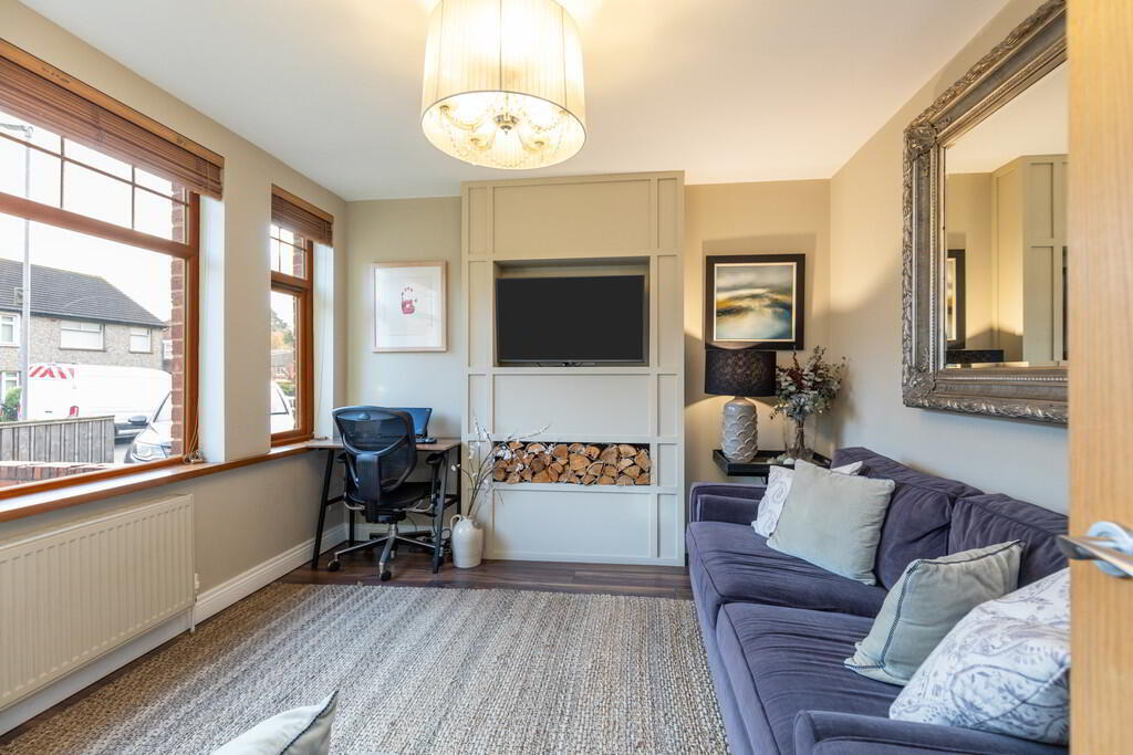 The living room boasts a striking timber panelled media wall, providing a modern touch and a perfect setting for relaxation. Two of the four generously proportioned bedrooms benefit from their own ensuite facilities, while a modern family bathroom serves the remaining bedrooms, all of which are beautifully presented.