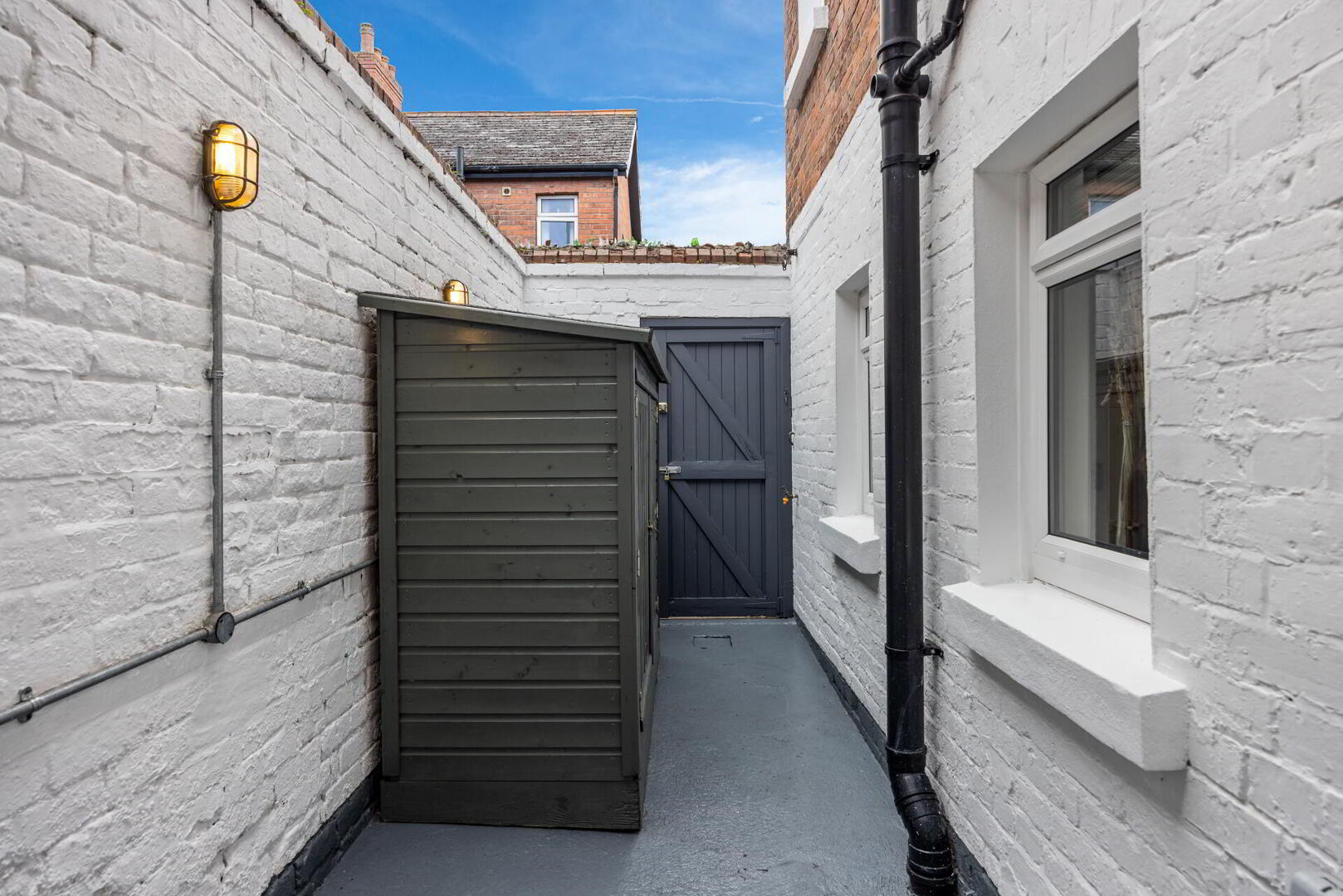 OUTSIDE Paved front garden with planting with path to front door. Enclosed rear yard.