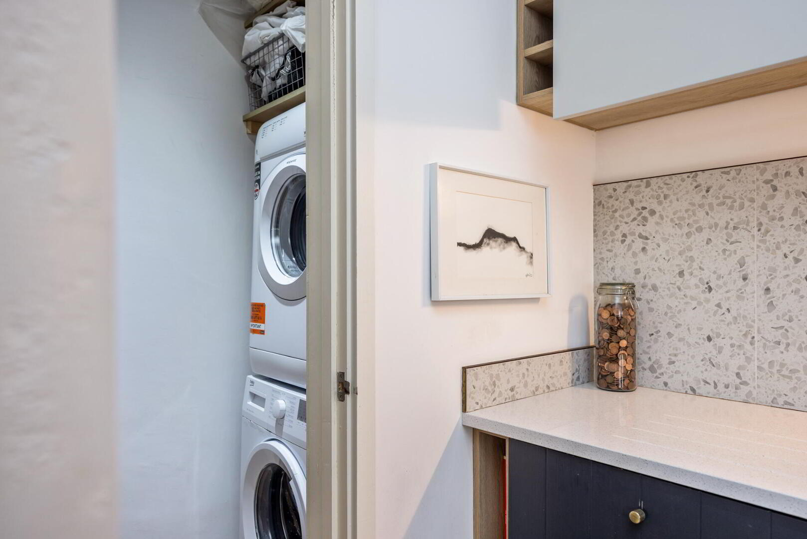 In addition, the property features tiles by David Scott, engineered timber floor by Ceco and a fitted kitchen by Johanna Montgomery.