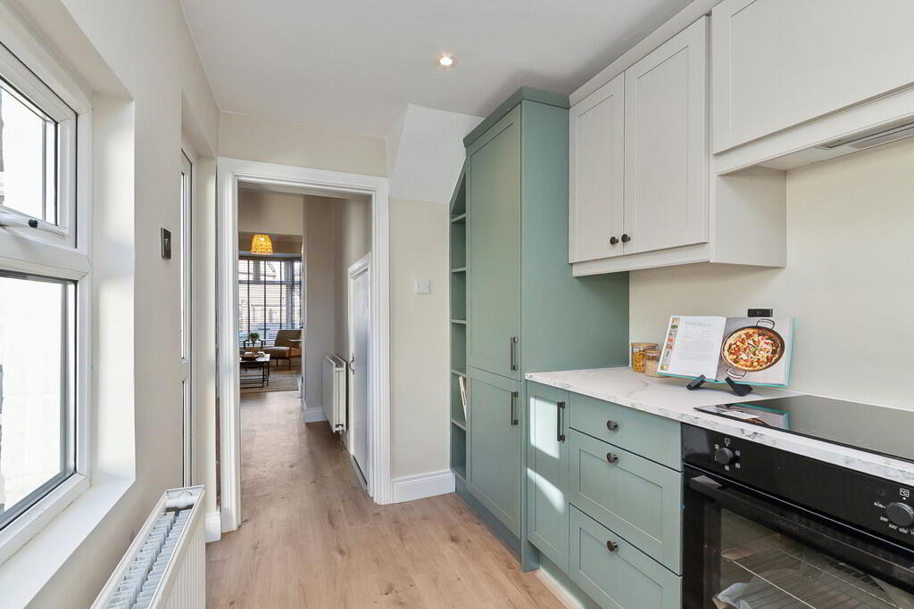 The accommodation comprises of a bay fronted living room, complete with a wood burning stove open to a casual dining area and a modern kitchen with a range of integrated appliances on the ground floor. The master bedroom is to the first floor and boasts a fitted walk in dressing room and luxury ensuite. A further two double bedrooms are to the second floor.