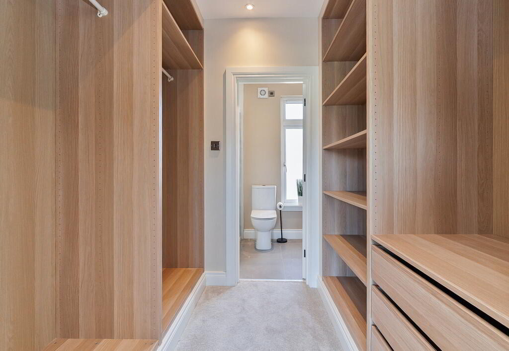 WALK IN DRESSING ROOM 7' 4" x 6' 8" (2.25m x 2.04m) Fitted shelves and robes, sensor spot lighting