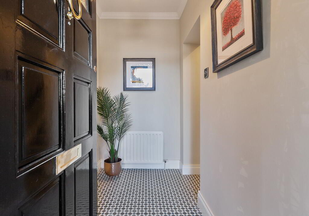 ENTRANCE HALL Solid wooden front door, tiled floor.