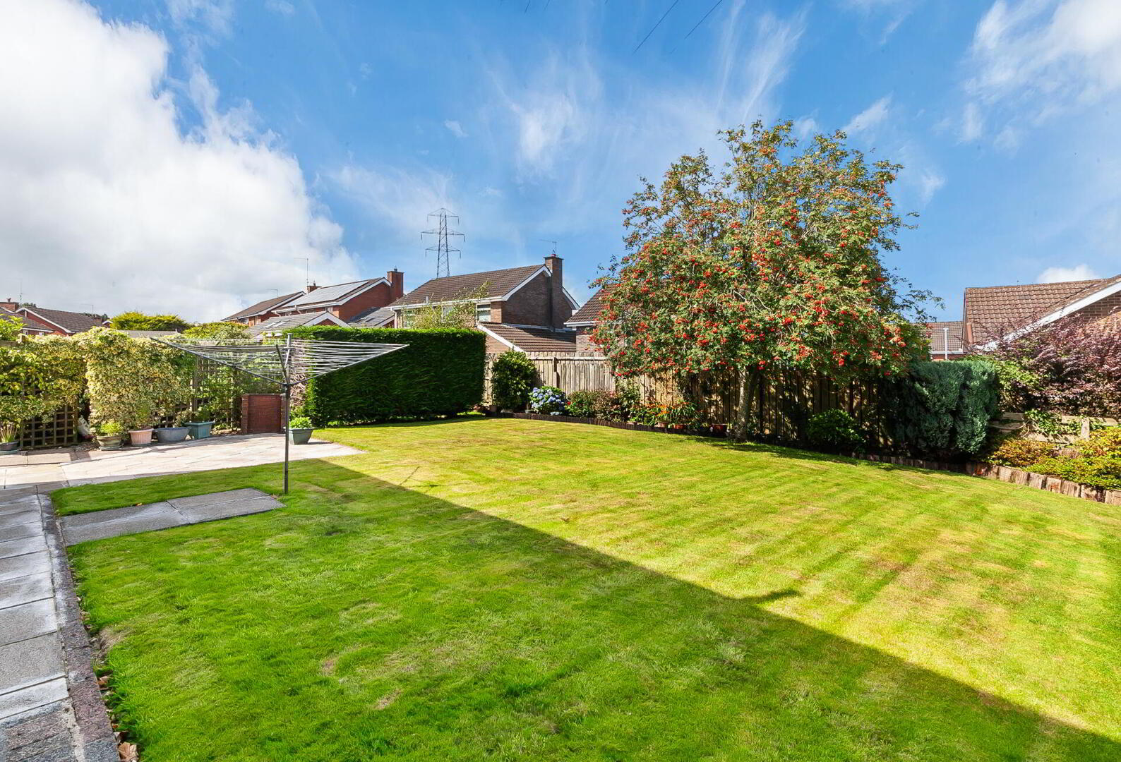 OUTSIDE Front garden in lawns and flowerbeds, paviour driveway with parking leading to integral garage. Superb rear gardens in lawns with boundary flowerbeds and fir trees, sheltered paved patio and BBQ area, oil tank, outside tap and light.