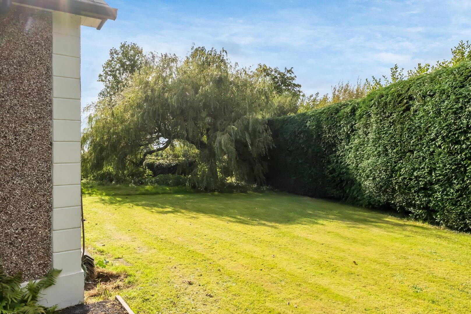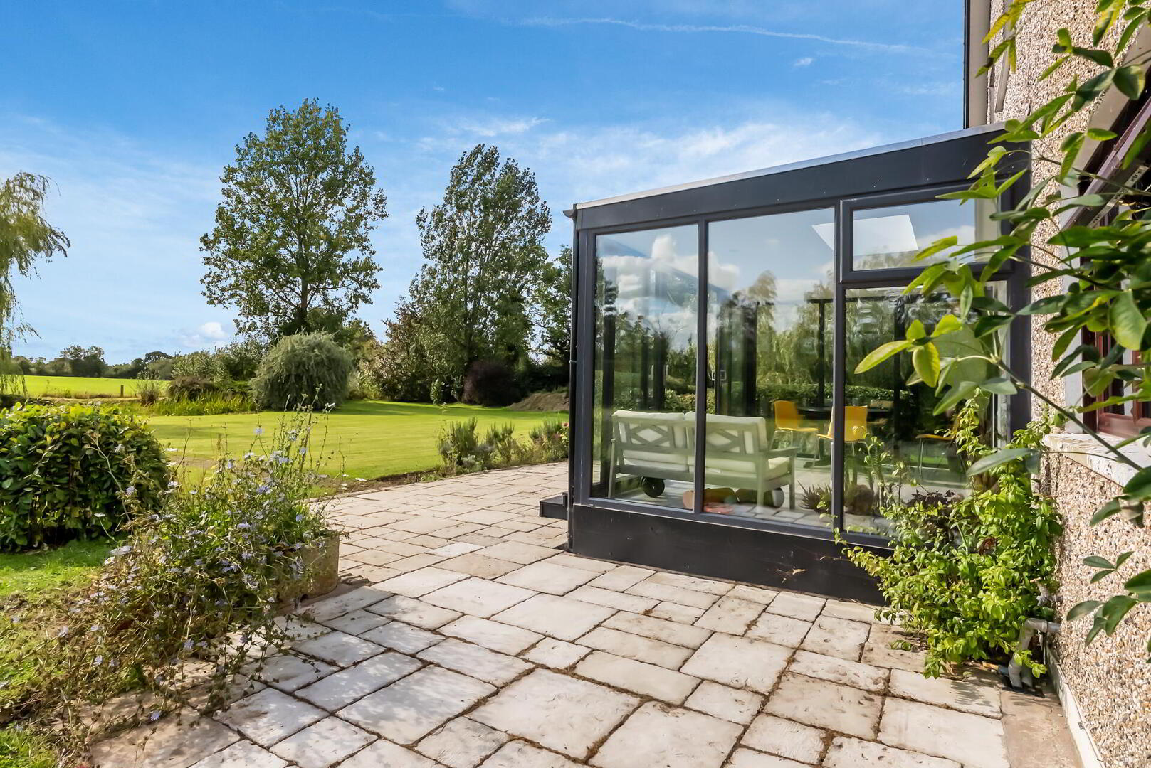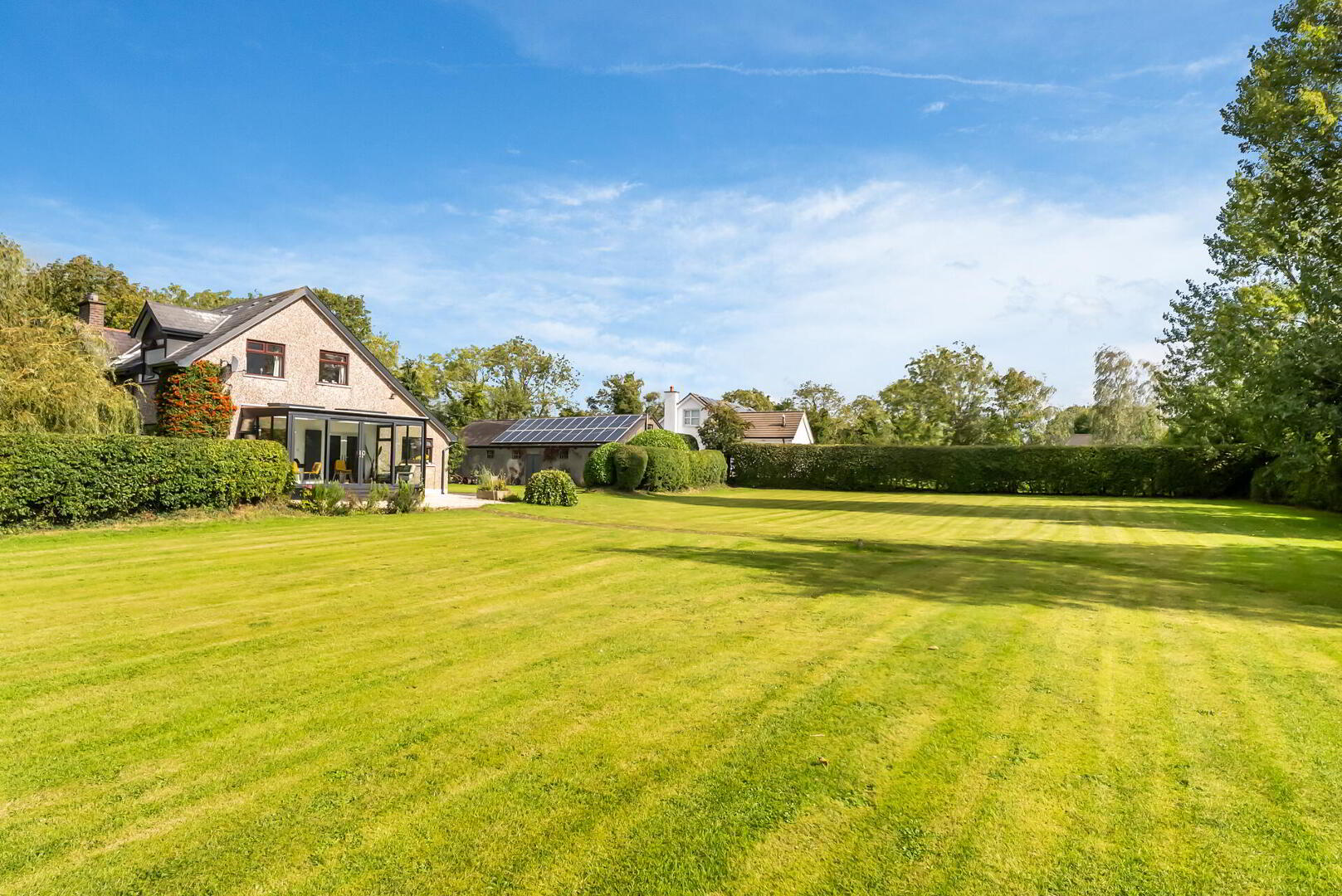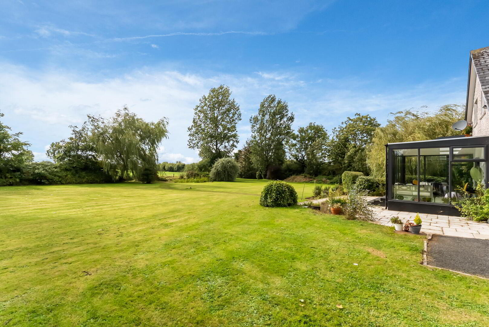 The landscaped gardens extend to approximately 1.5 acres, featuring mature planted boundaries, established trees and shrubs, a pond, expansive lawns, and an extensive tarmac driveway providing ample parking.