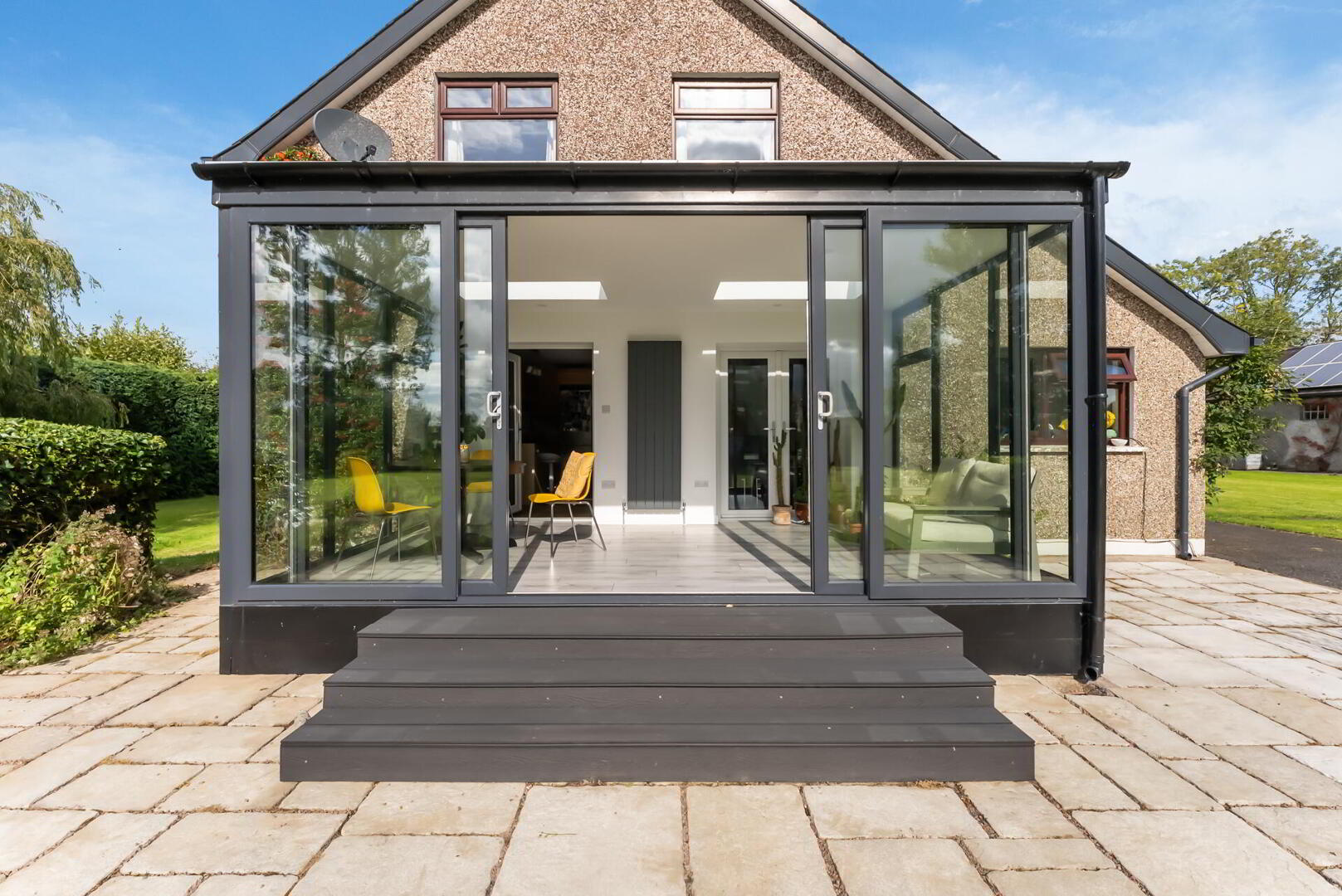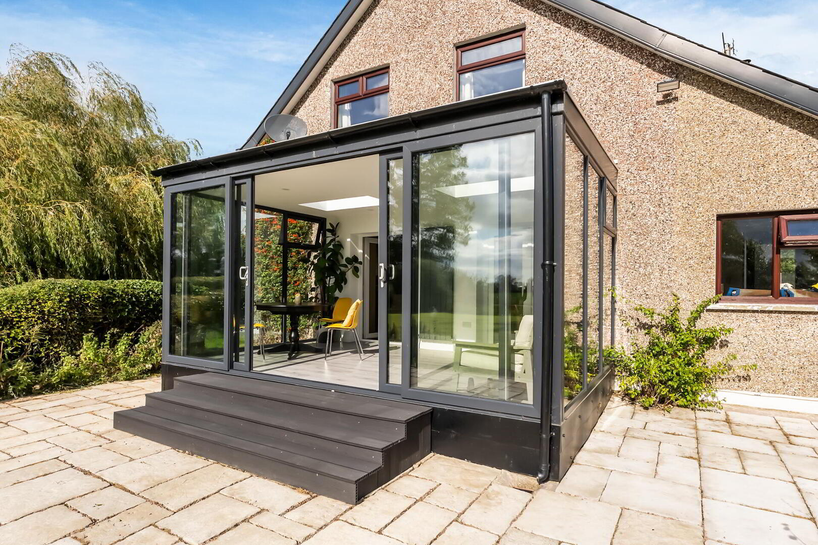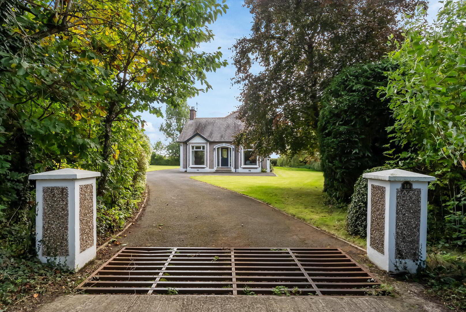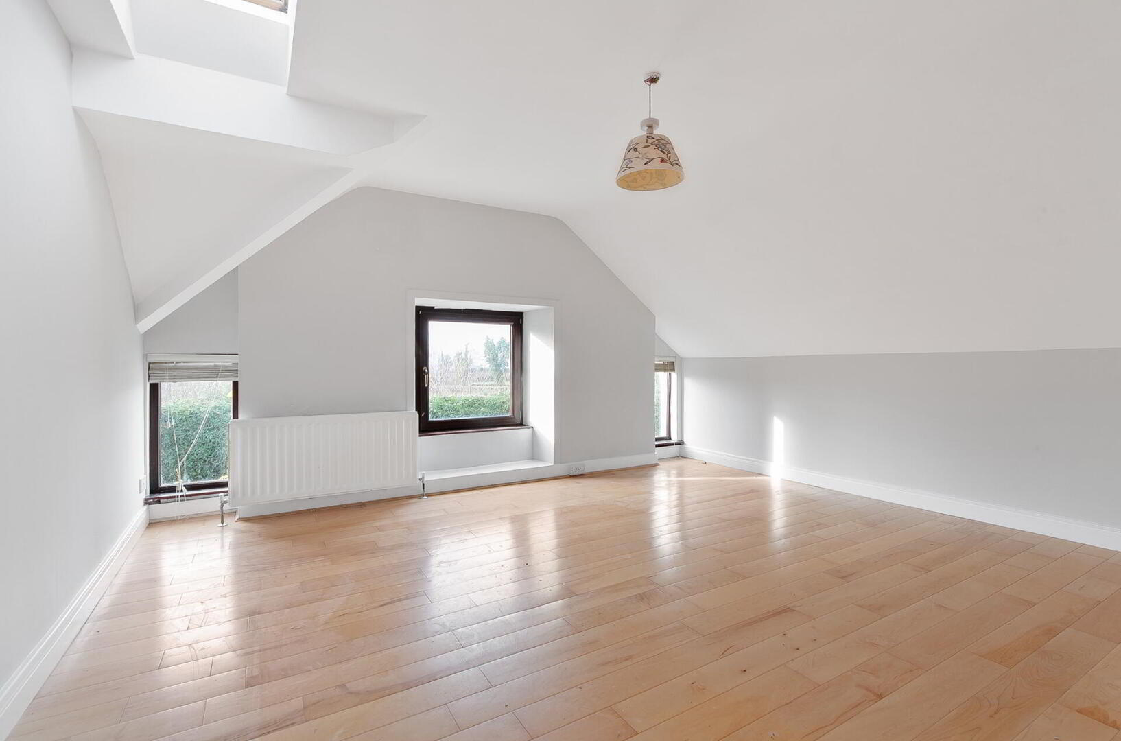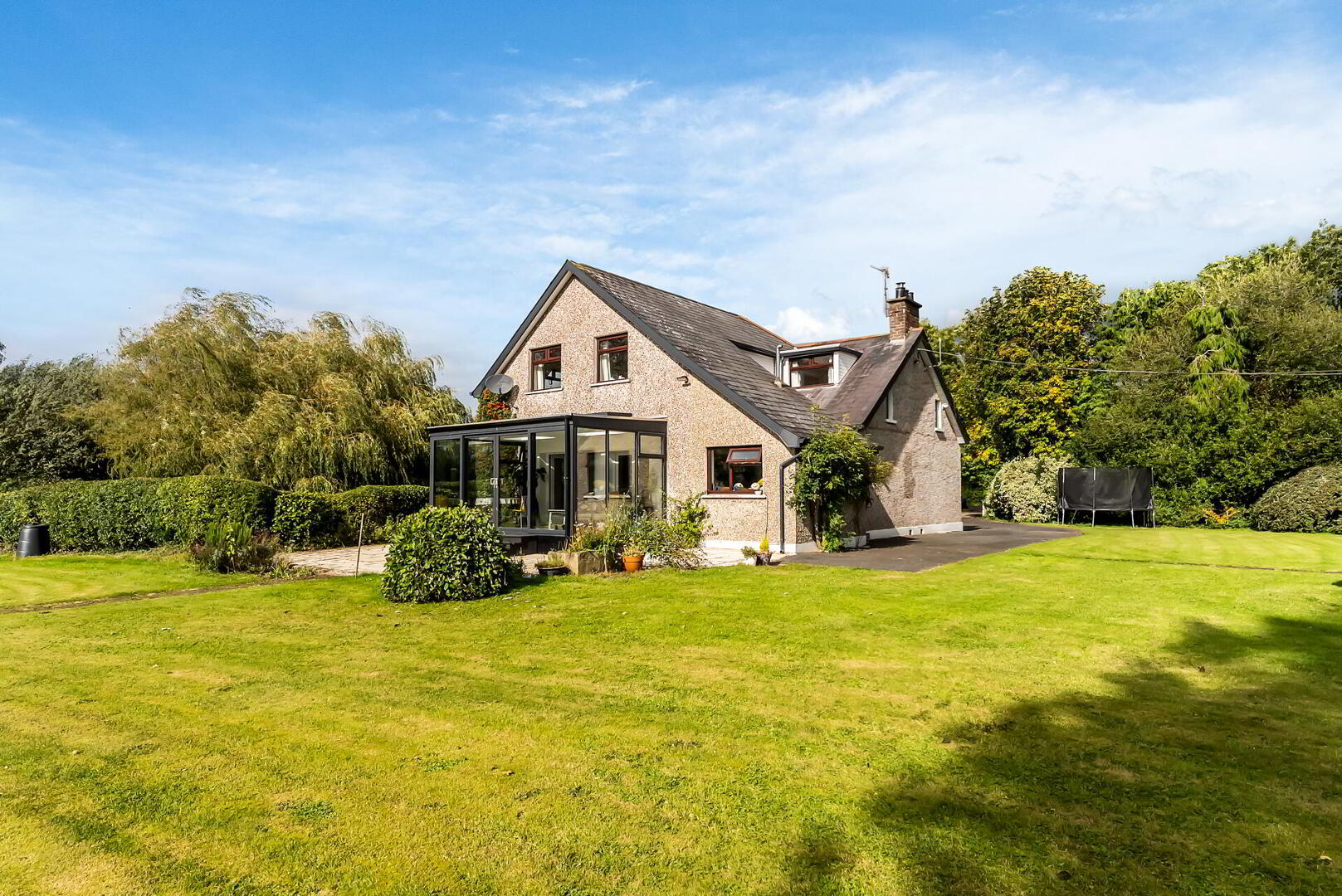 The landscaped gardens extend to approximately 1.5 acres, featuring mature planted boundaries, established trees and shrubs, a pond, expansive lawns, and an extensive tarmac driveway providing ample parking.