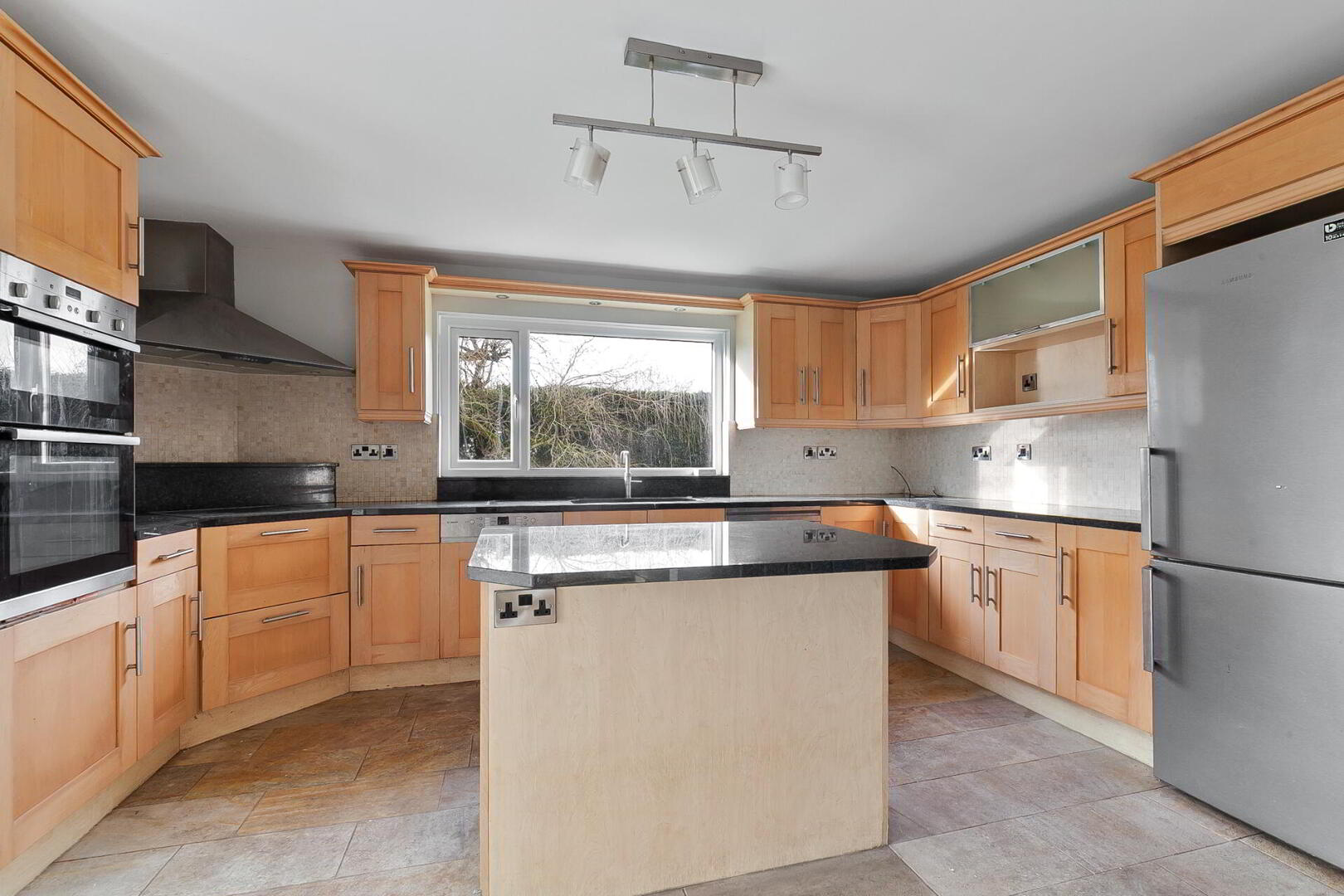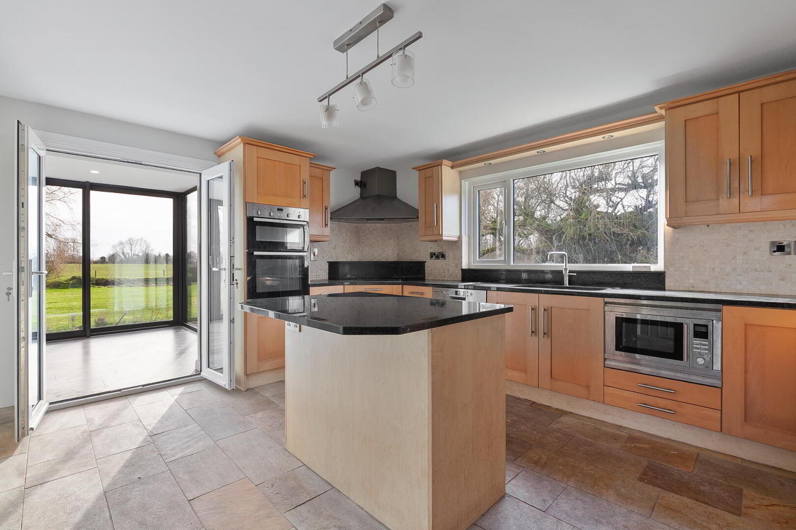 KITCHEN 11' 11" x 14' 11" (3.64m x 4.56m) Range of fitted high and low level units, granite work surfaces with matching upstand, integrated four ring hob, integrated double oven, double drainer stainless steel sink unit with Quooker tap, integrated Bosch dishwasher, integrated microwave, island unit with granite work surfaces and matching splash back, stainless steel extractor fan, feature upright radiator.