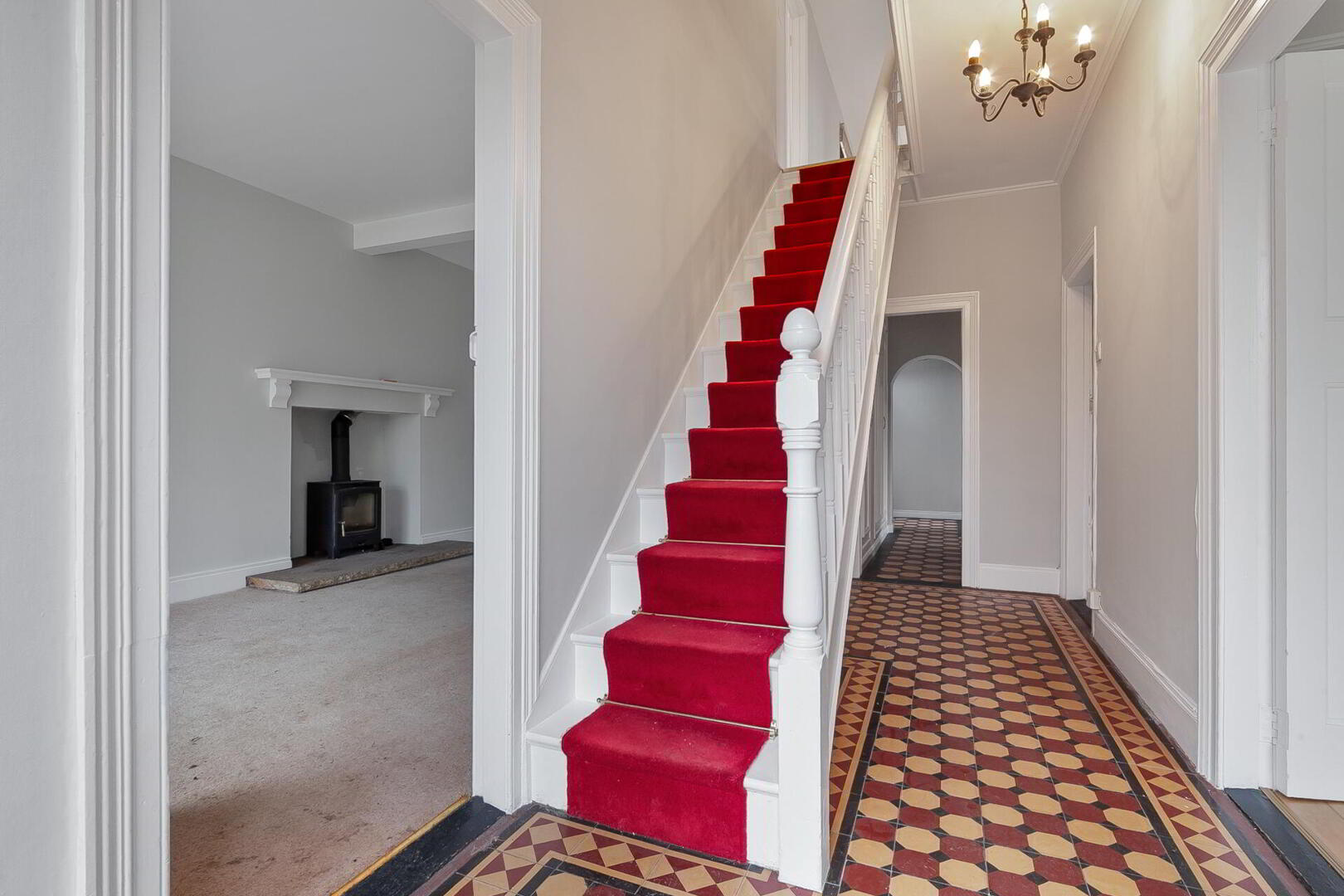 RECEPTION HALL Tiled floor, stairs to first floor, under stairs storage area.