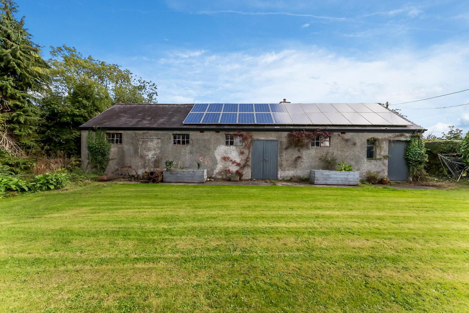 Additional benefits include oil fired central heating, a utility area, and substantial outbuildings with storage space and solar panels.
