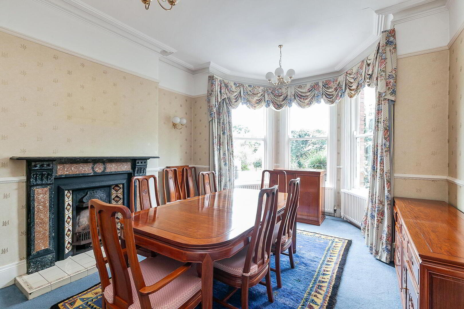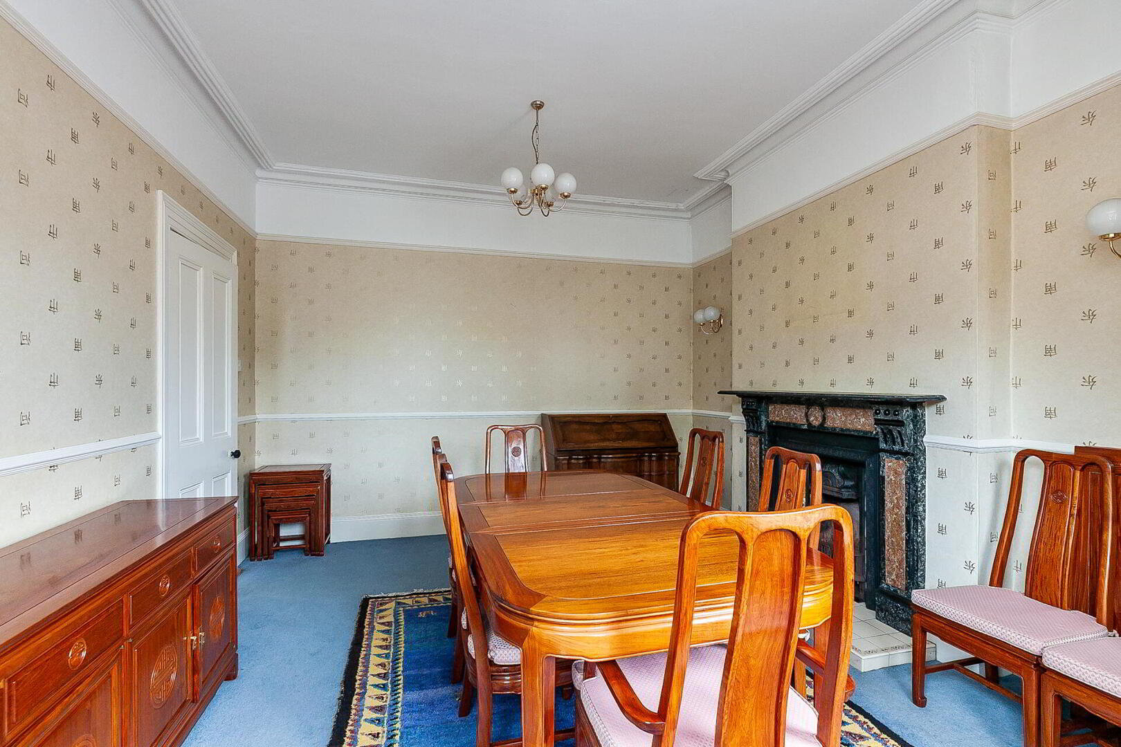 DINING ROOM 18' 2" x 12' 8" (5.54m x 3.88m) Fireplace with marble surround, cast iron inset, tiled hearth, cornice ceiling, dado rail, picture rail.