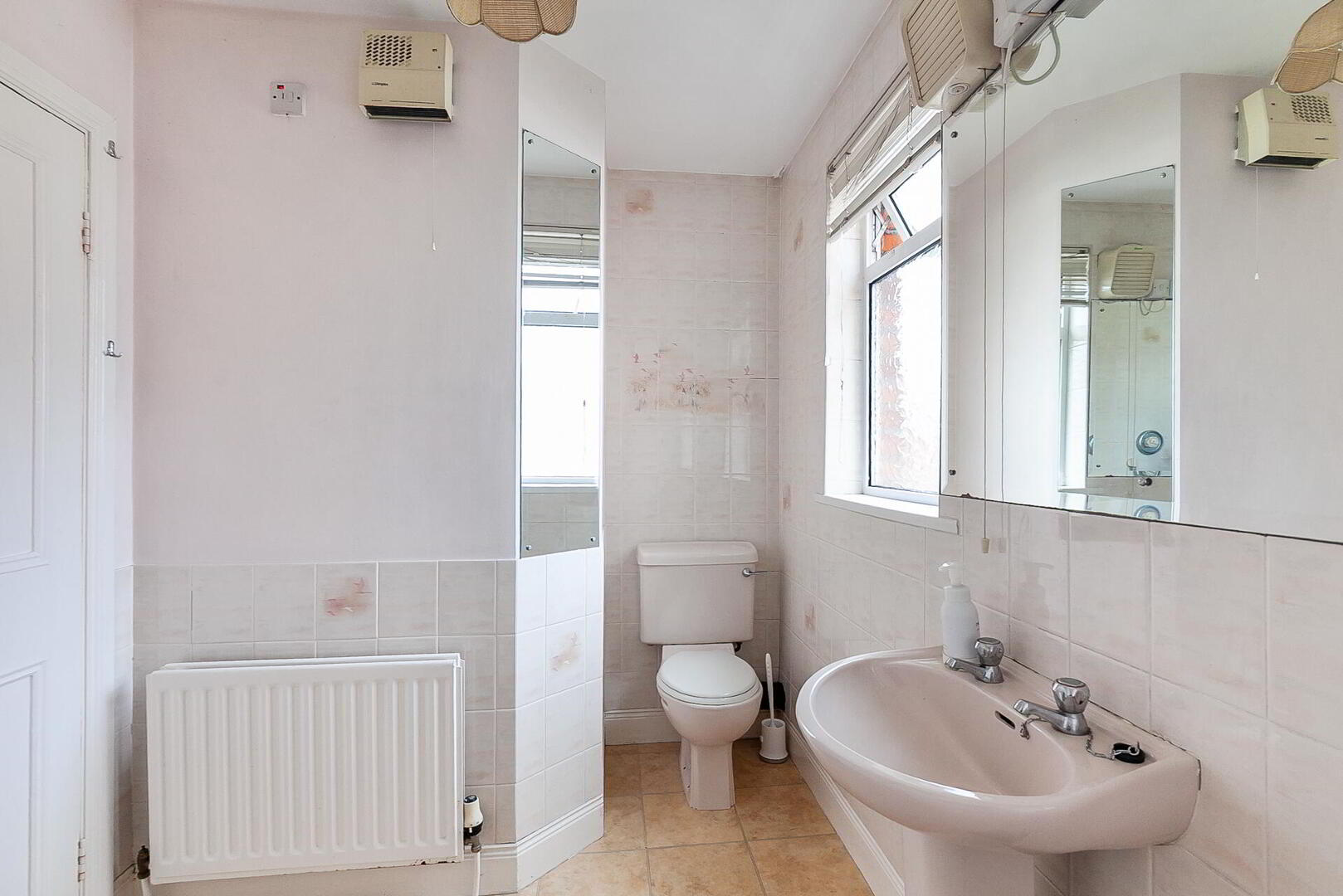 SHOWER ROOM Enclosed shower cubicle, low flush WC, vanity wash hand basin, part tiled walls, extractor fan.