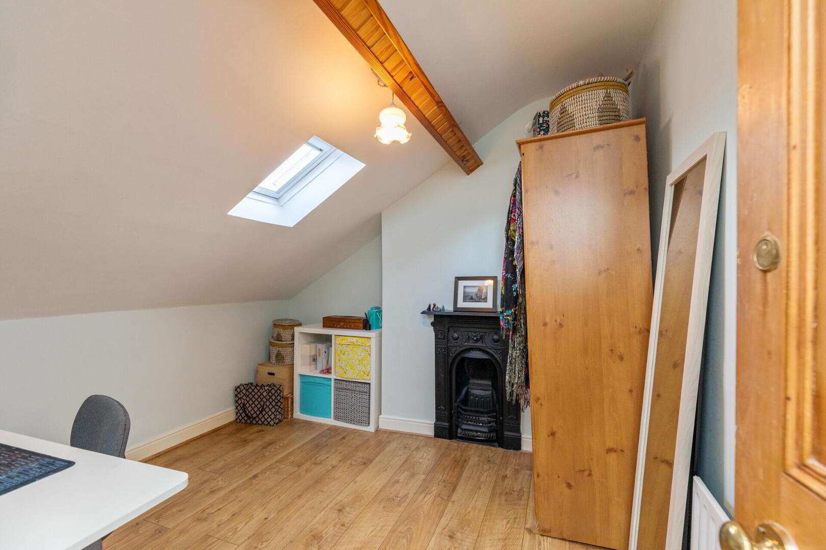 BEDROOM 3 10' 0" x 9' 7" (3.06m x 2.93m) Velux window, feature fireplace, wood strip flooring.