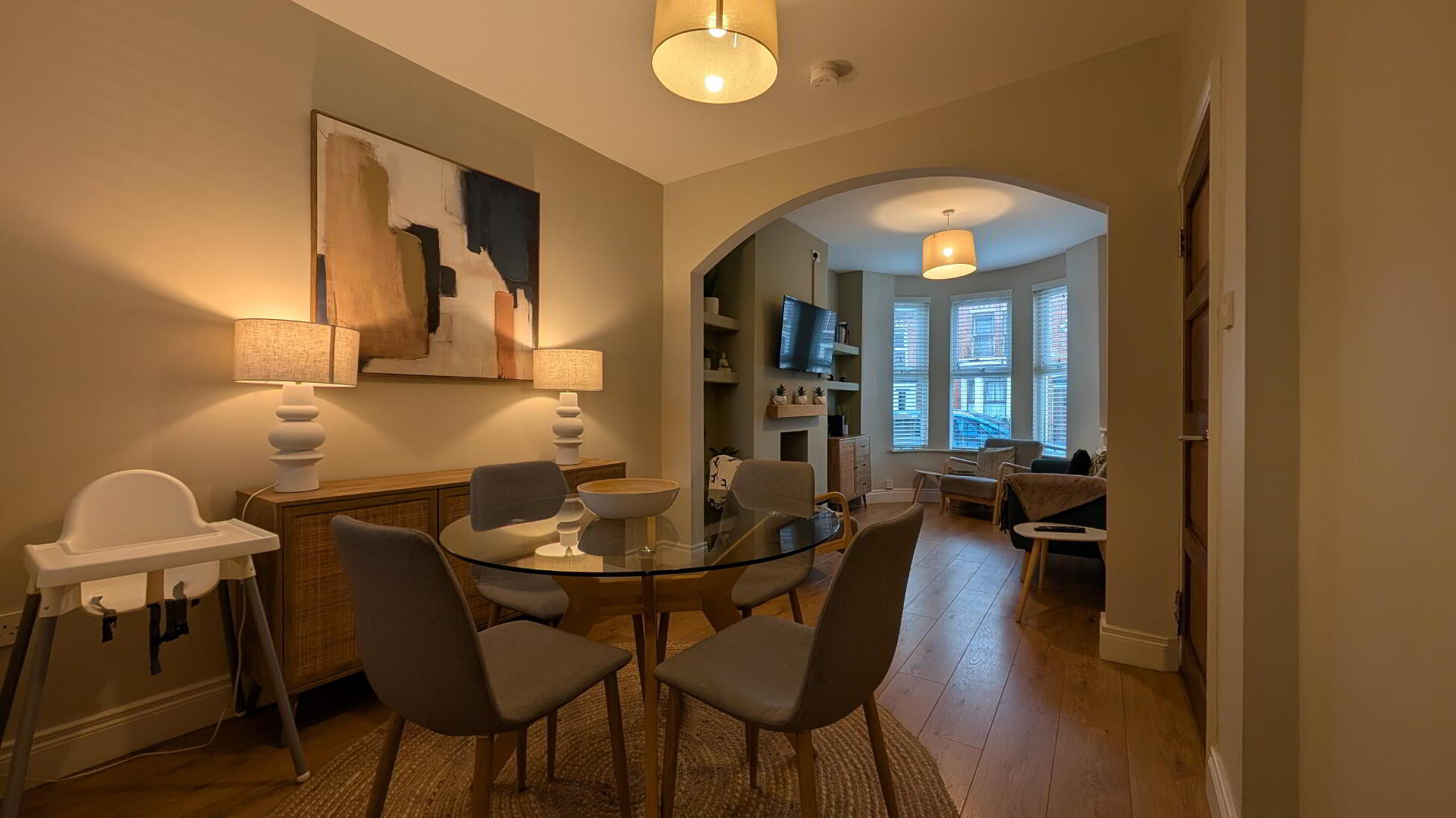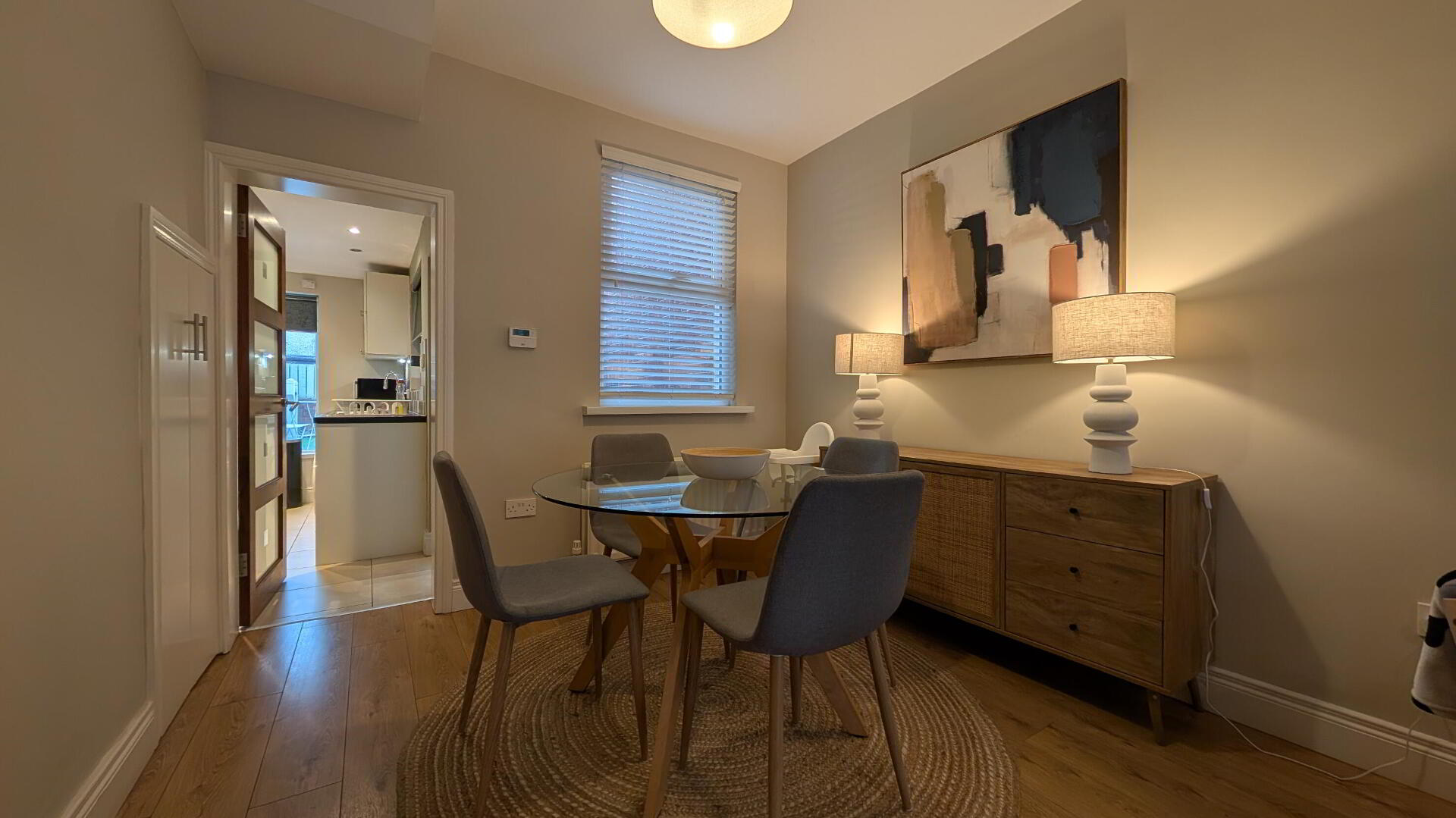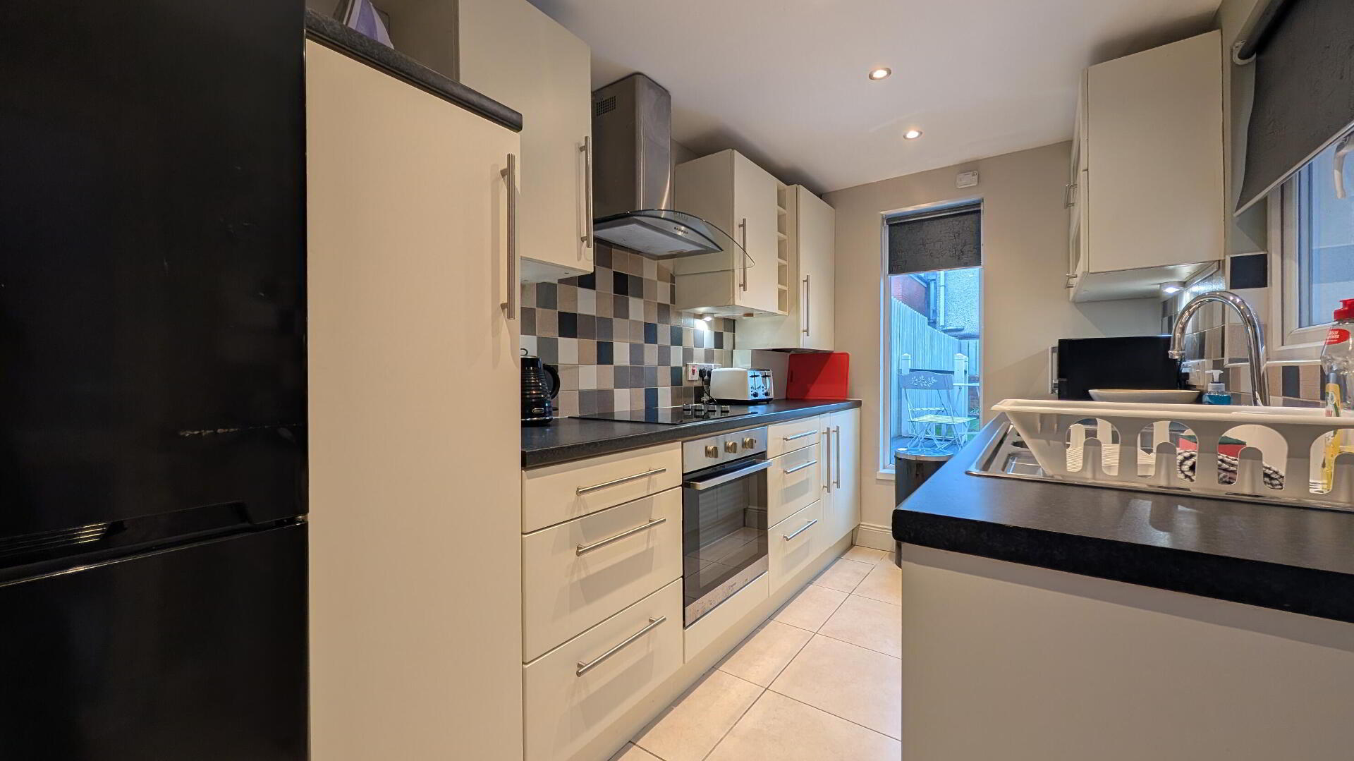 Inside, the property offers a bright and spacious open-plan living and dining area, leading through to a well-appointed rear kitchen. The kitchen is fully equipped with a range of high and low-level units along with integrated appliances.