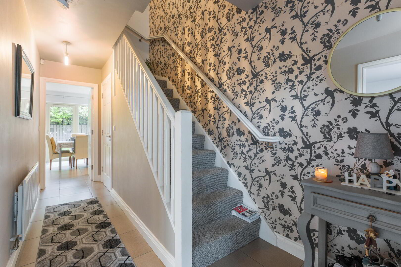 ENTRANCE HALL Composite front door with side window, tiled floor.