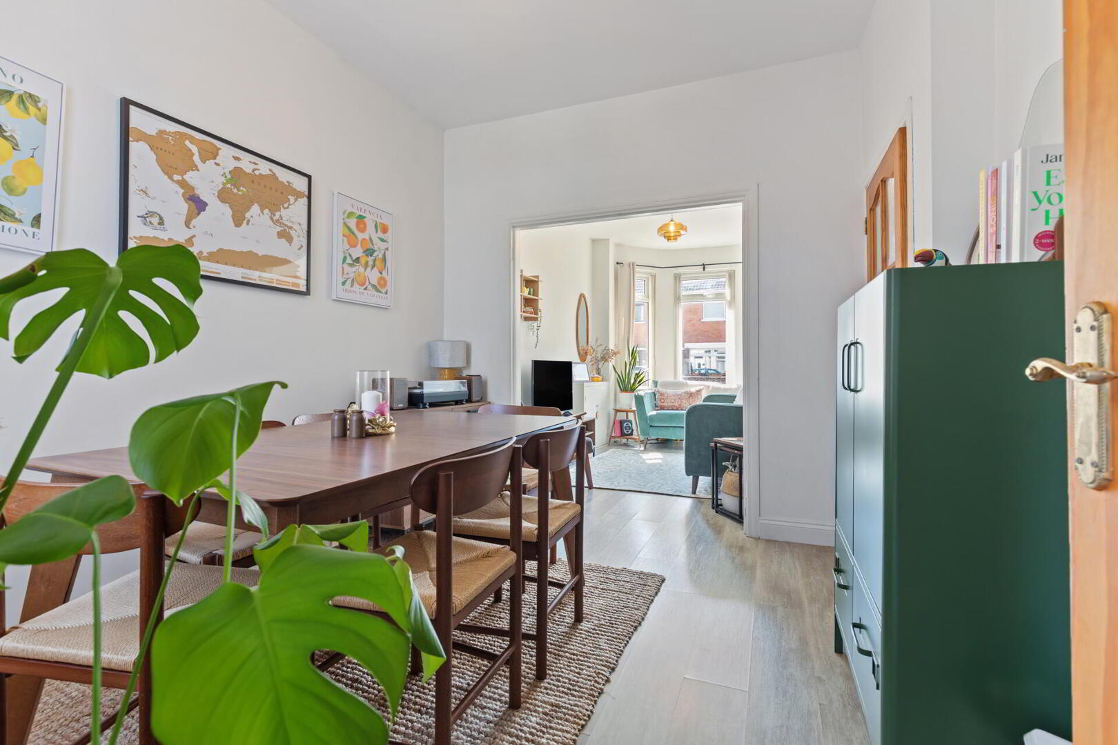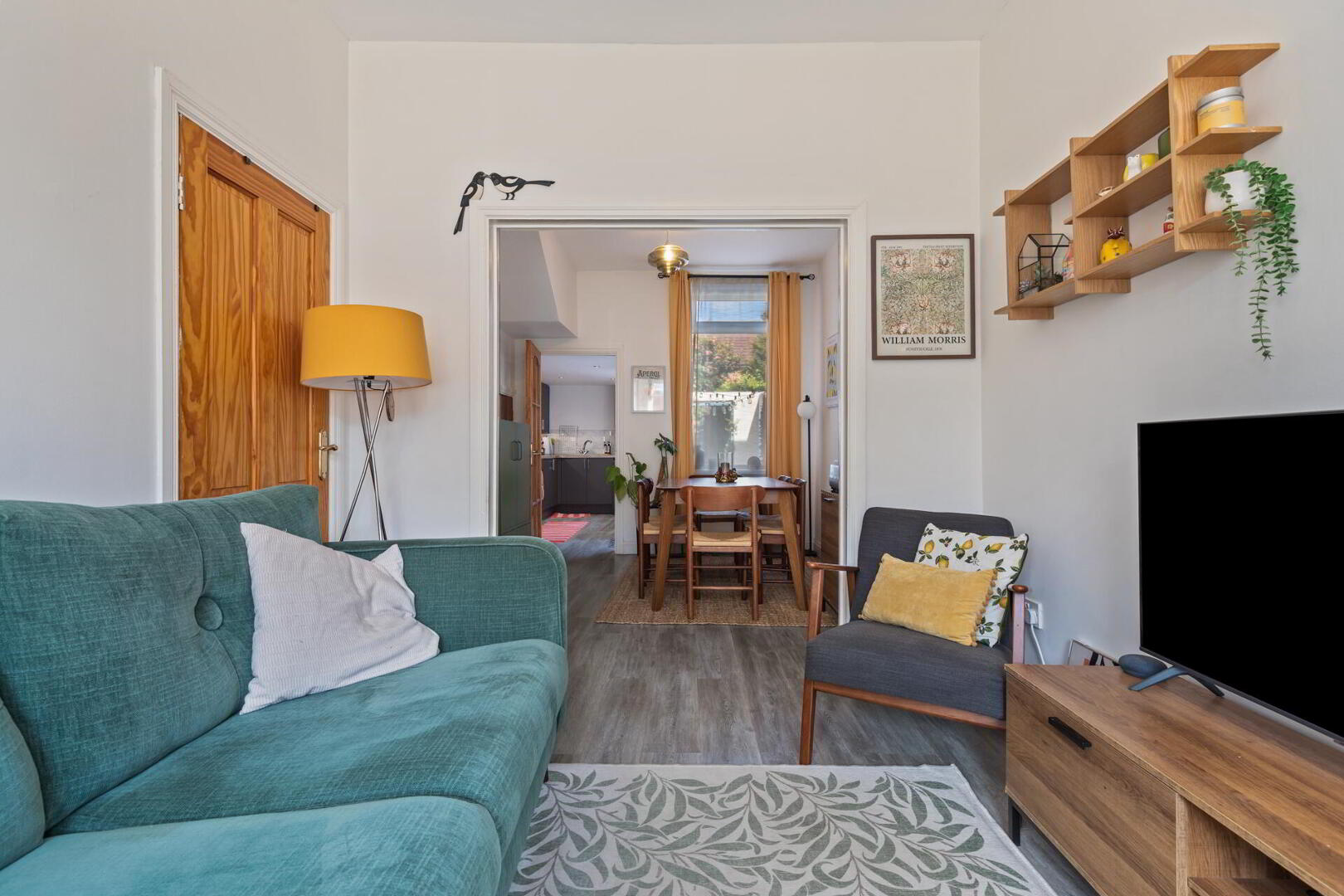 LIVING / DINING ROOM 24' 3" x 8' 9" (7.41m x 2.67m) Bay window, wood strip flooring, under stair storage.