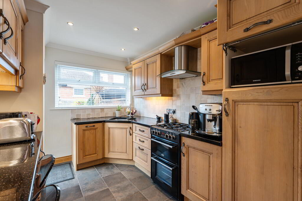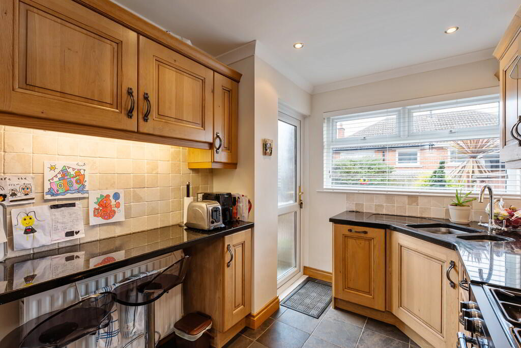 KITCHEN 10' 11" x 7' 11" (3.338m x 2.437m) Range of high and low level units with granite worktops. 1.5 stainless steel sunken sink unit with mixer taps and tiled splash back. Integrated cooker with four ring gas hob and stainless steel extractor hood. Integrated fridge. Integrated dishwasher. Breakfast bar with matching worktops. Tiled floor. Cornice ceiling. Pvc door leading to rear garden.