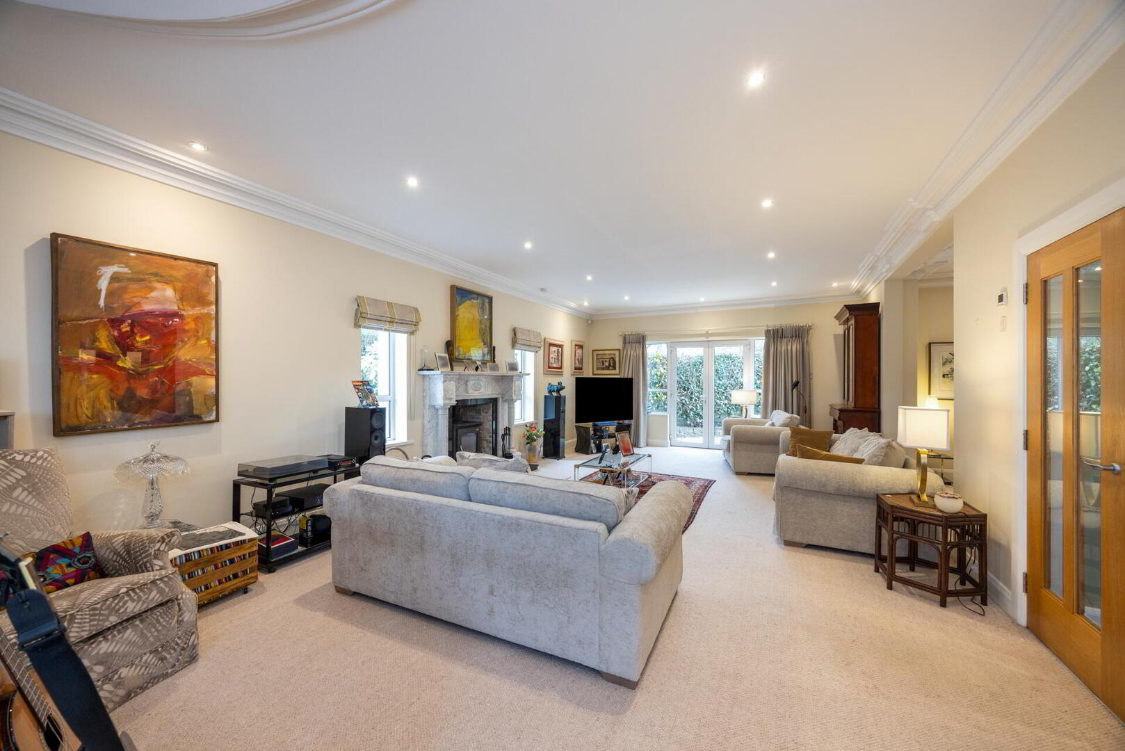 DRAWING ROOM 34' 9" x 16' 0" (10.6m x 4.88m) (@ widest points) Raised timber floor area, patio doors to rear garden, fireplace with marble surround, granite hearth, wood burning stove, cornice ceiling, recessed low voltage spotlights.
