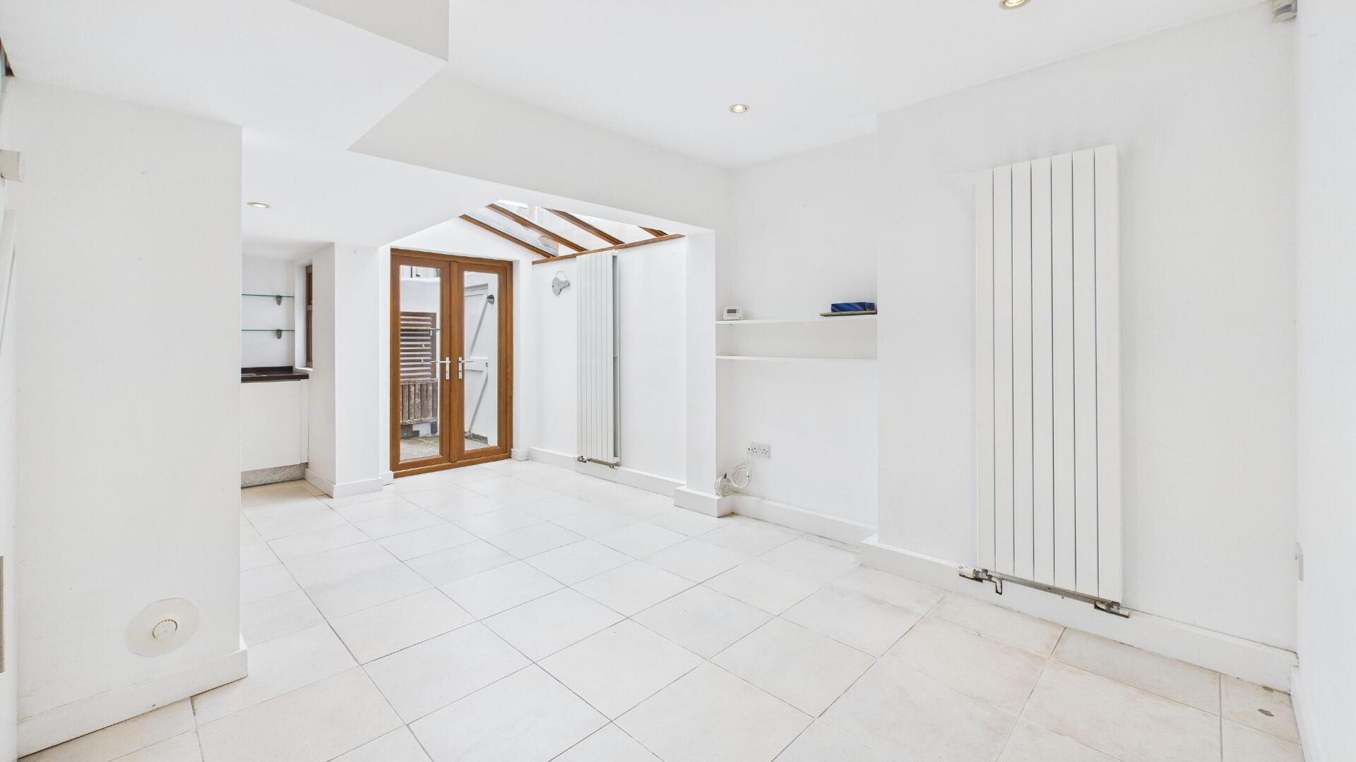 MODERN KITCHEN / DINING AREA 20' 11" x 13' 1" (6.38m x 3.99m) Excellent range of high and low level units with drawers and complementary work surfaces; sink unit and side drainer; integrated dishwasher; integrated washing machine; fridge / freezer included; tile floor; two vertical radiators; French Doors to rear patio.