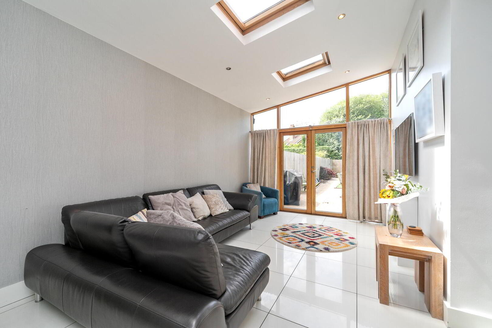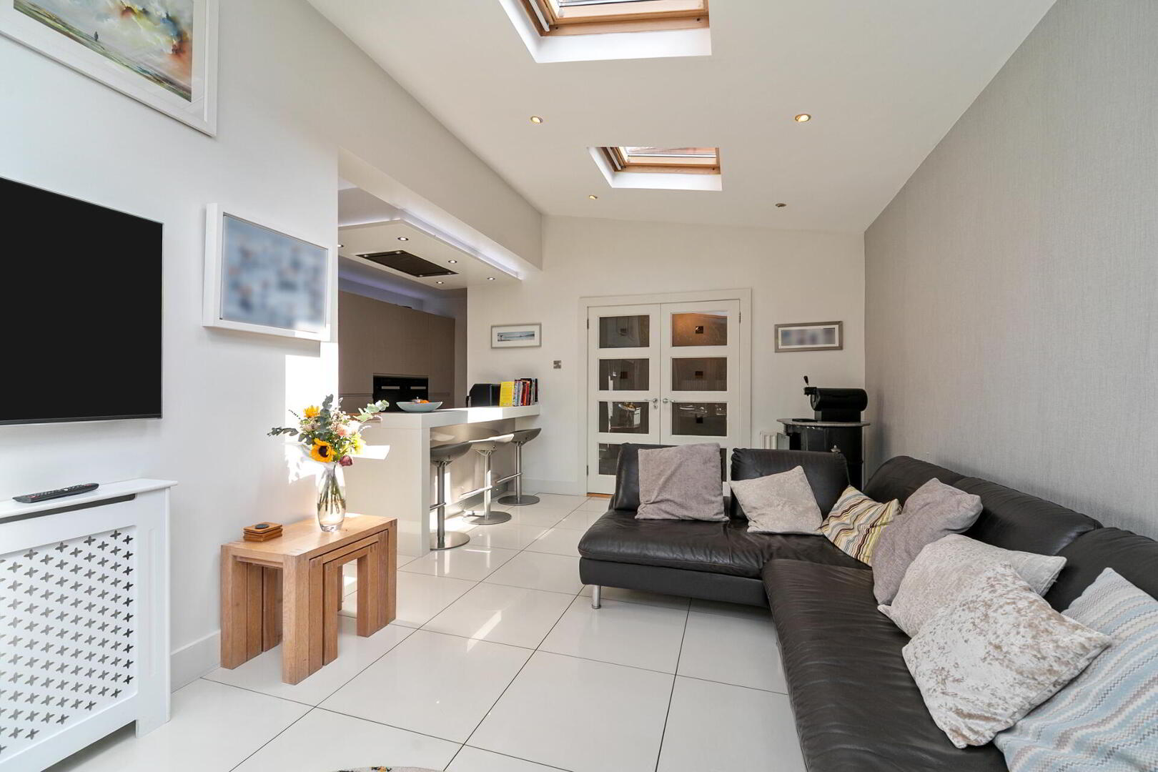 SUN ROOM / FAMILY ROOM 19' 1" x 10' 2" (5.84m x 3.11m) Tiled floor, recessed low voltage spotlights, Velux skylight, patio doors to rear garden.