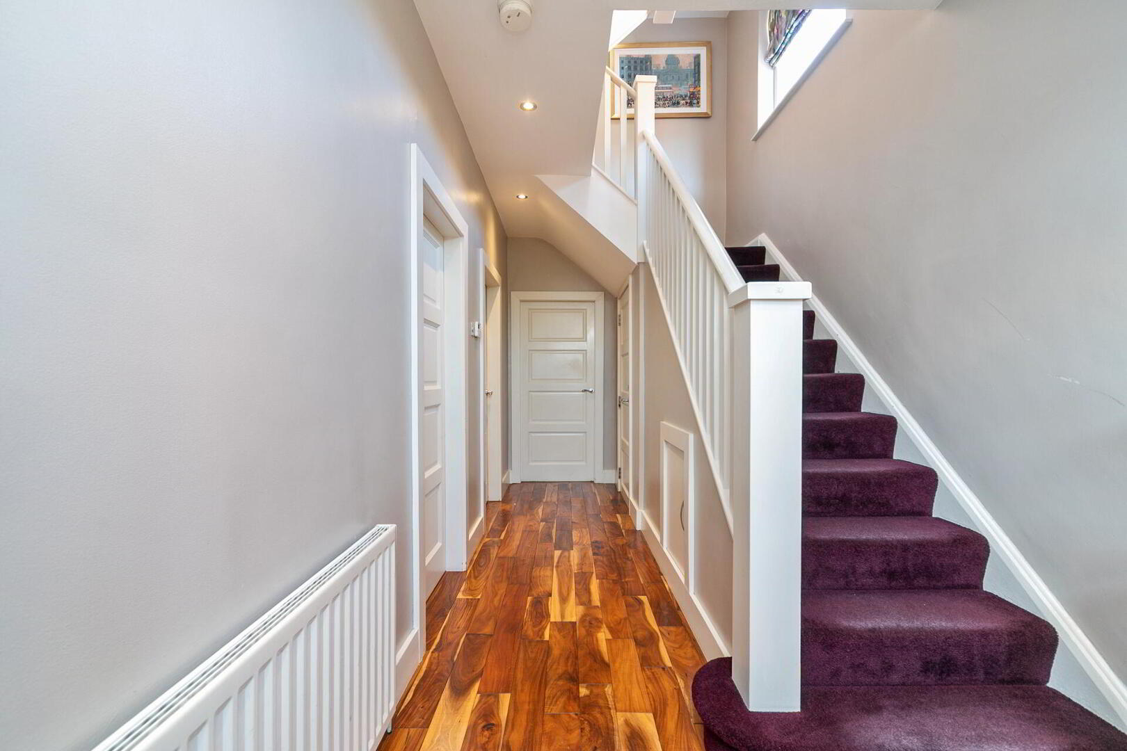 ENTRANCE HALL Hardwood flooring, stairs to first floor, recessed low voltage spotlights.