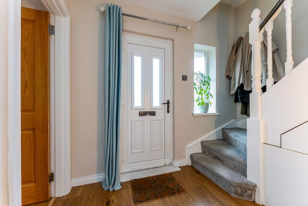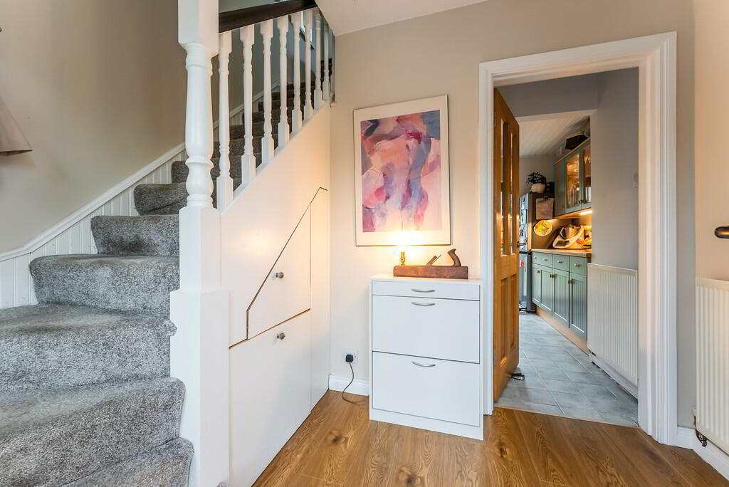 ENTRANCE HALL uPVC front door, wood strip flooring, under stair storage.