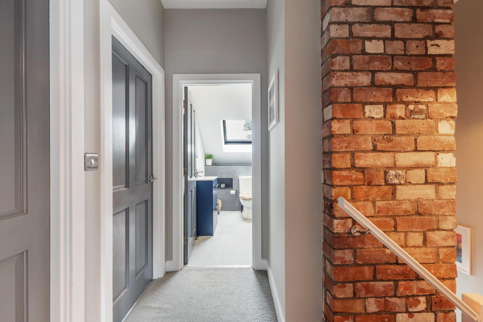 Upstairs, the first floor offers three well-proportioned bedrooms along with a contemporary bathroom fitted with a modern suite and feature freestanding bath.