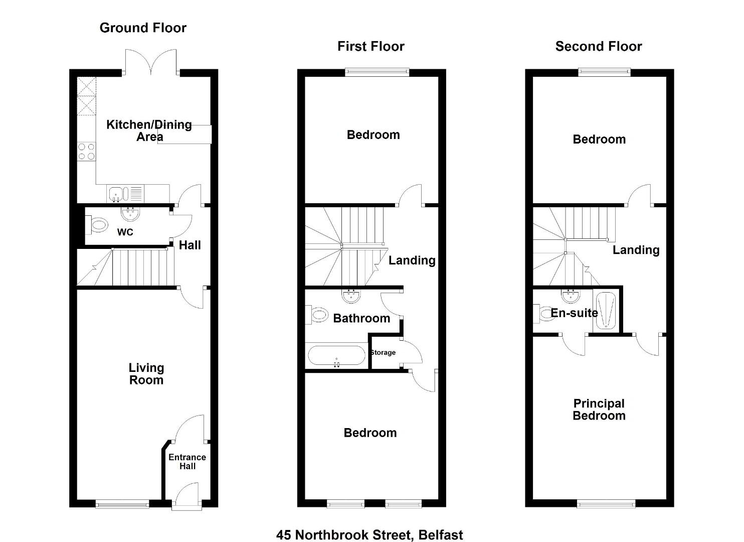 There are two bedrooms and a bathroom on the first floor and a further two bedrooms, one with ensuite shower room, on the second floor.
