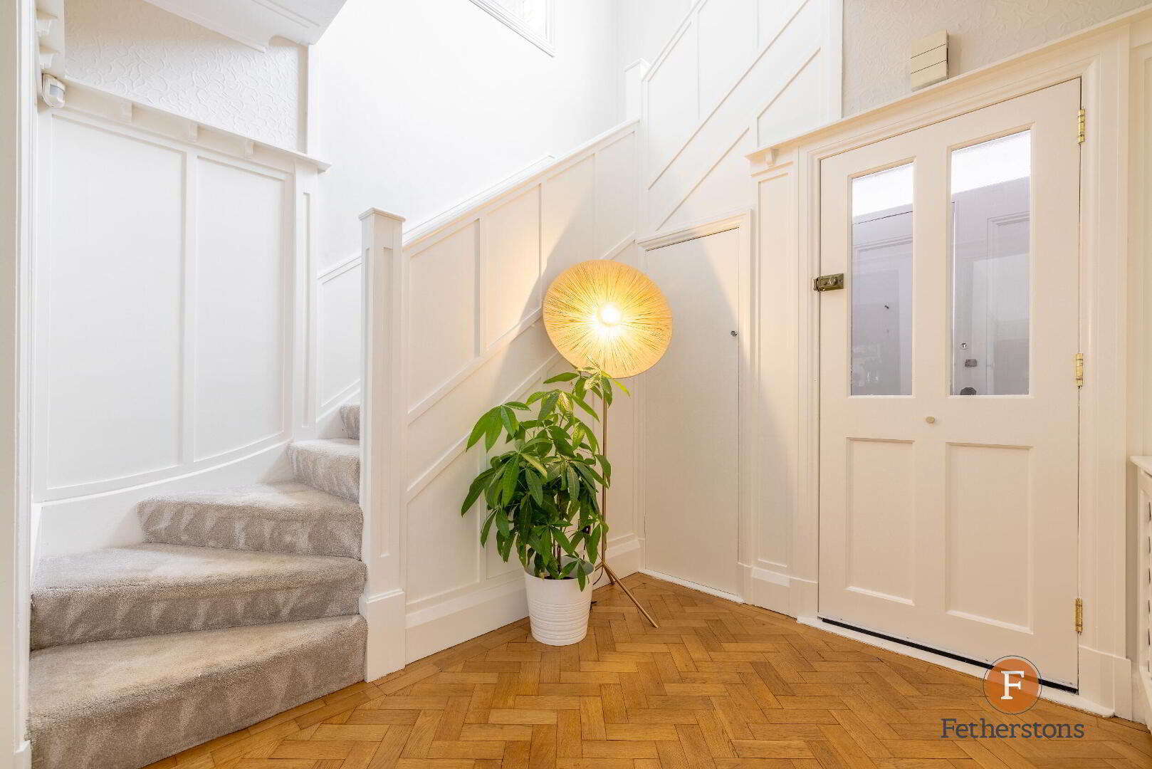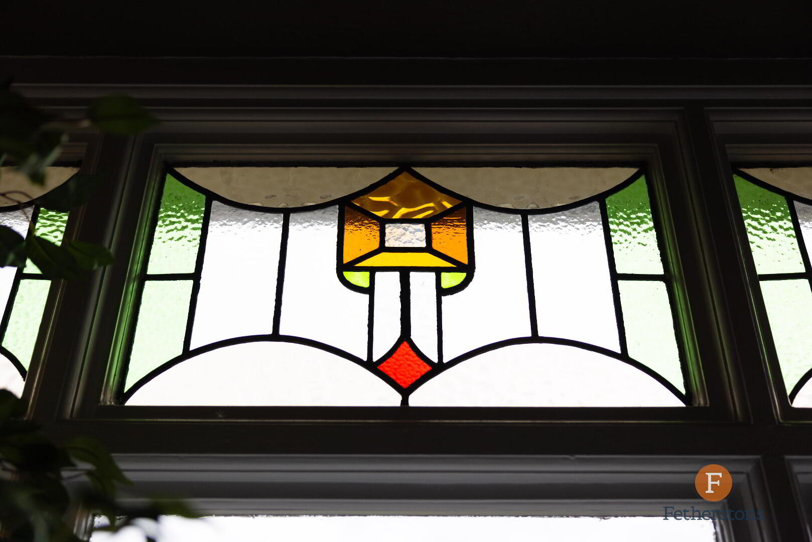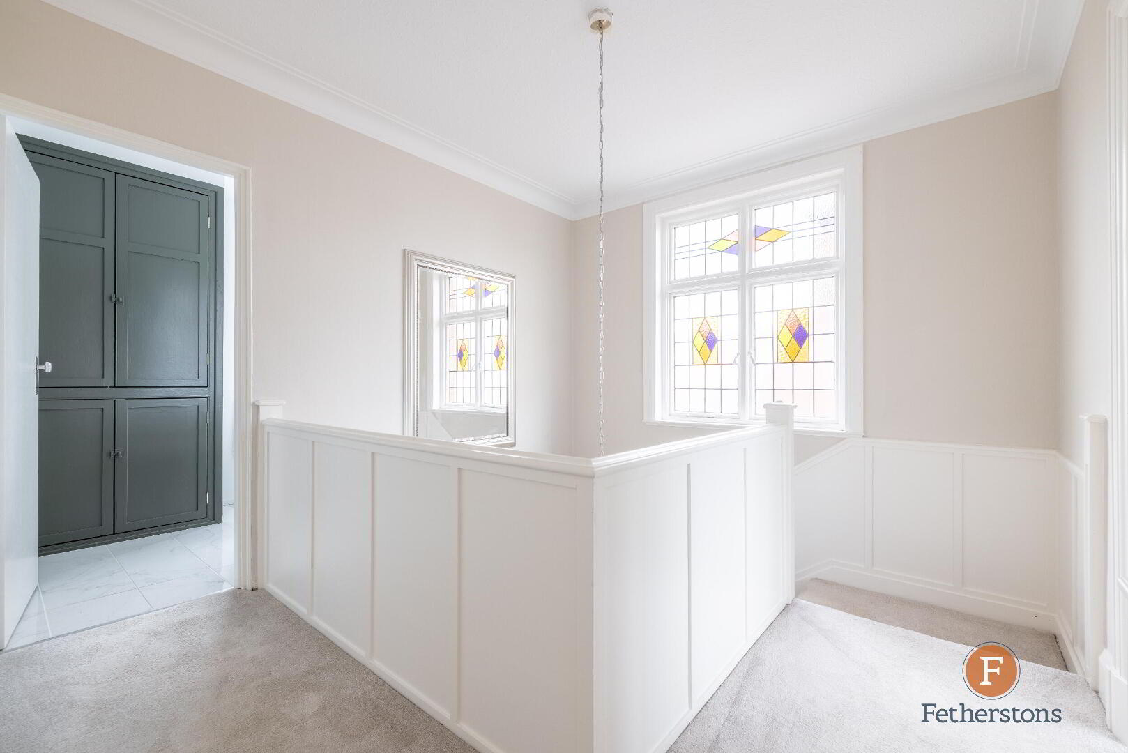 FIRST FLOORING LANDING Feature stained glass window, cornice ceiling.