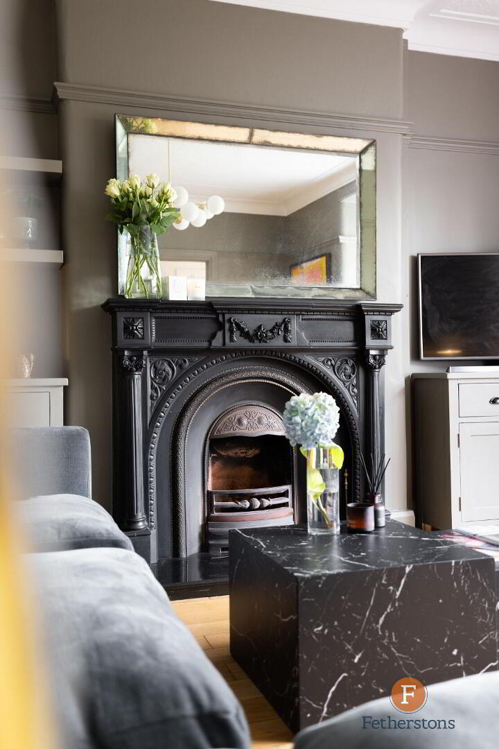 FAMILY ROOM 12' 2" x 10' 9" (3.71m x 3.28m) Bay window, feature Cast iron fireplace, cornice ceiling.