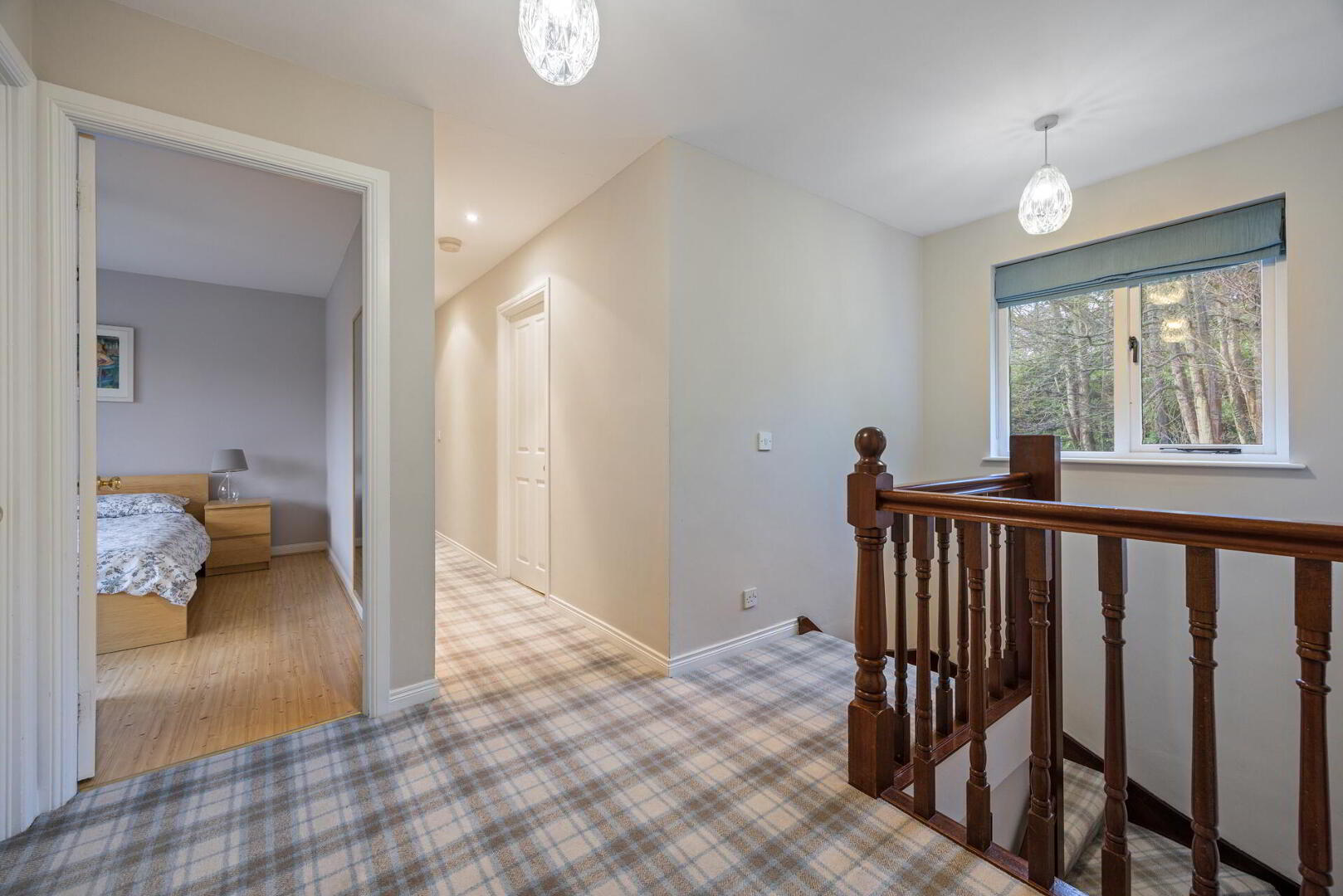 FIRST FLOOR LANDING Roofspace access. Linen closet, hot press.