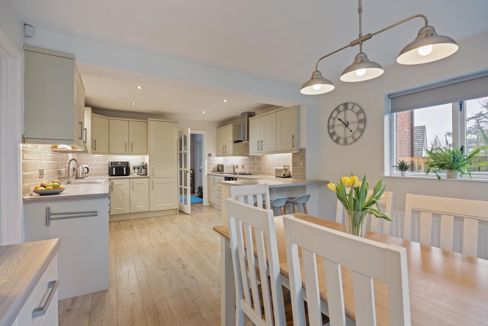 This fine home has been extended and very well maintained by the current vendors over the years. A spacious reception / dining hall leads to two reception rooms, a modern kitchen with an excellent family / dining area, utility room and downstairs w.c on the ground floor.