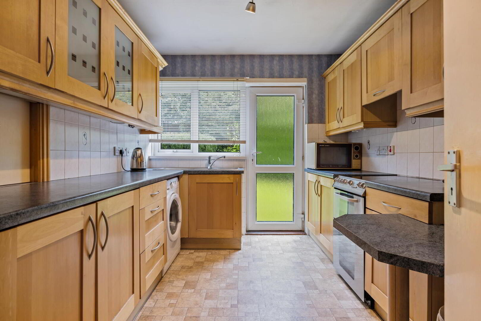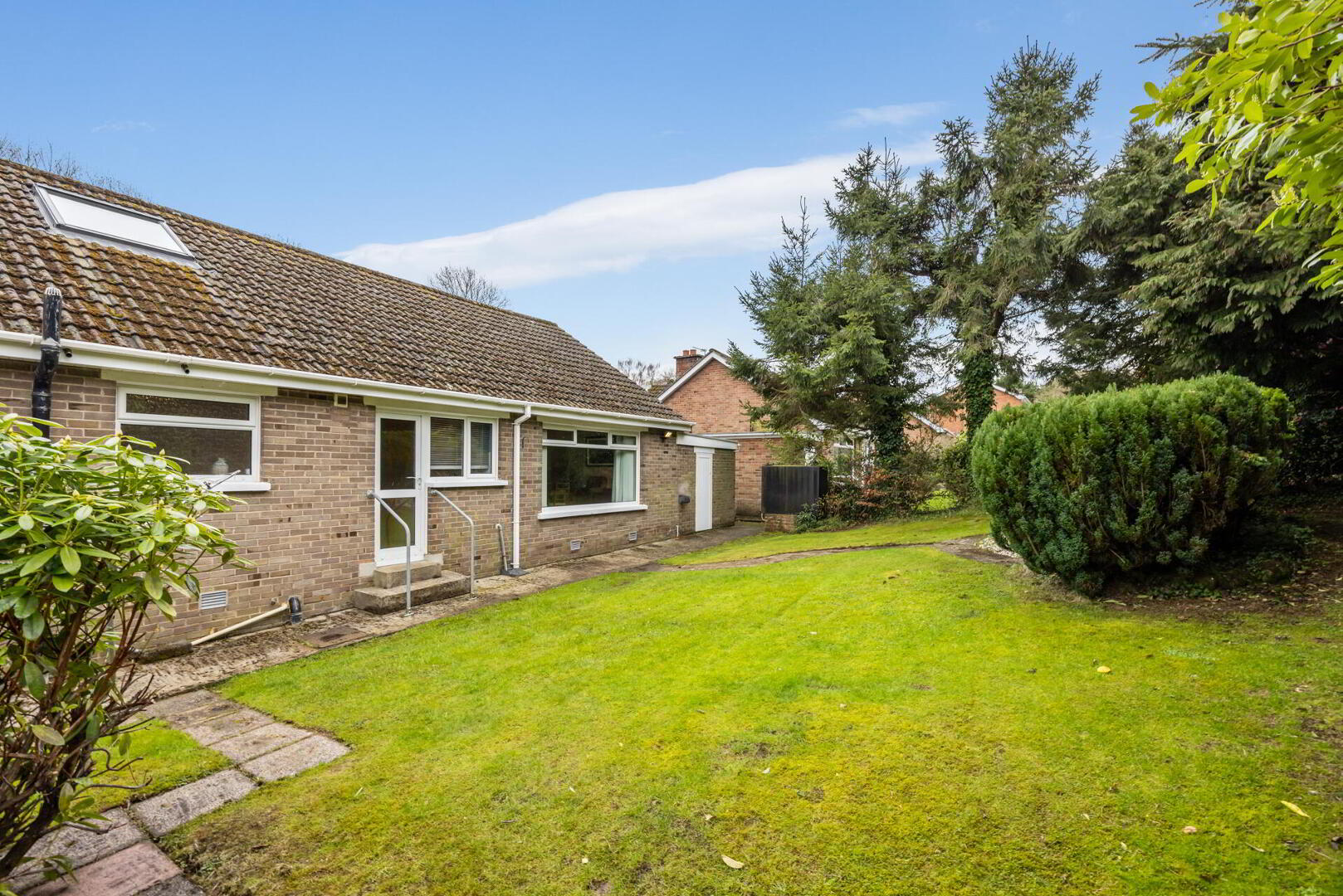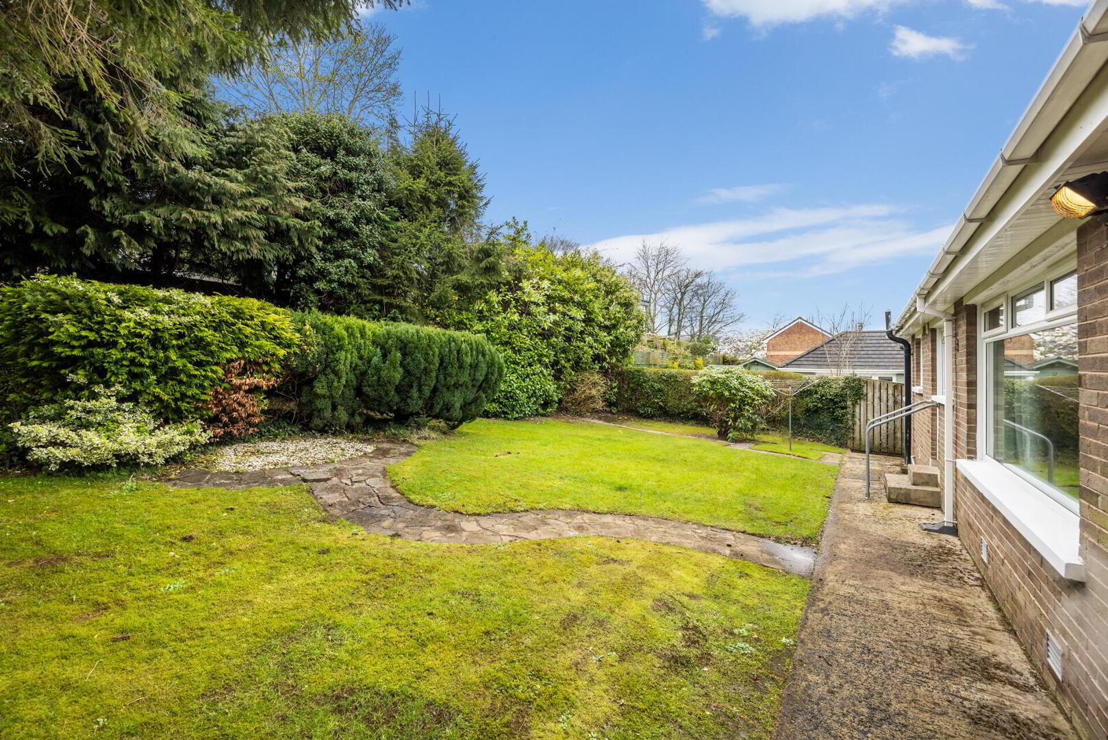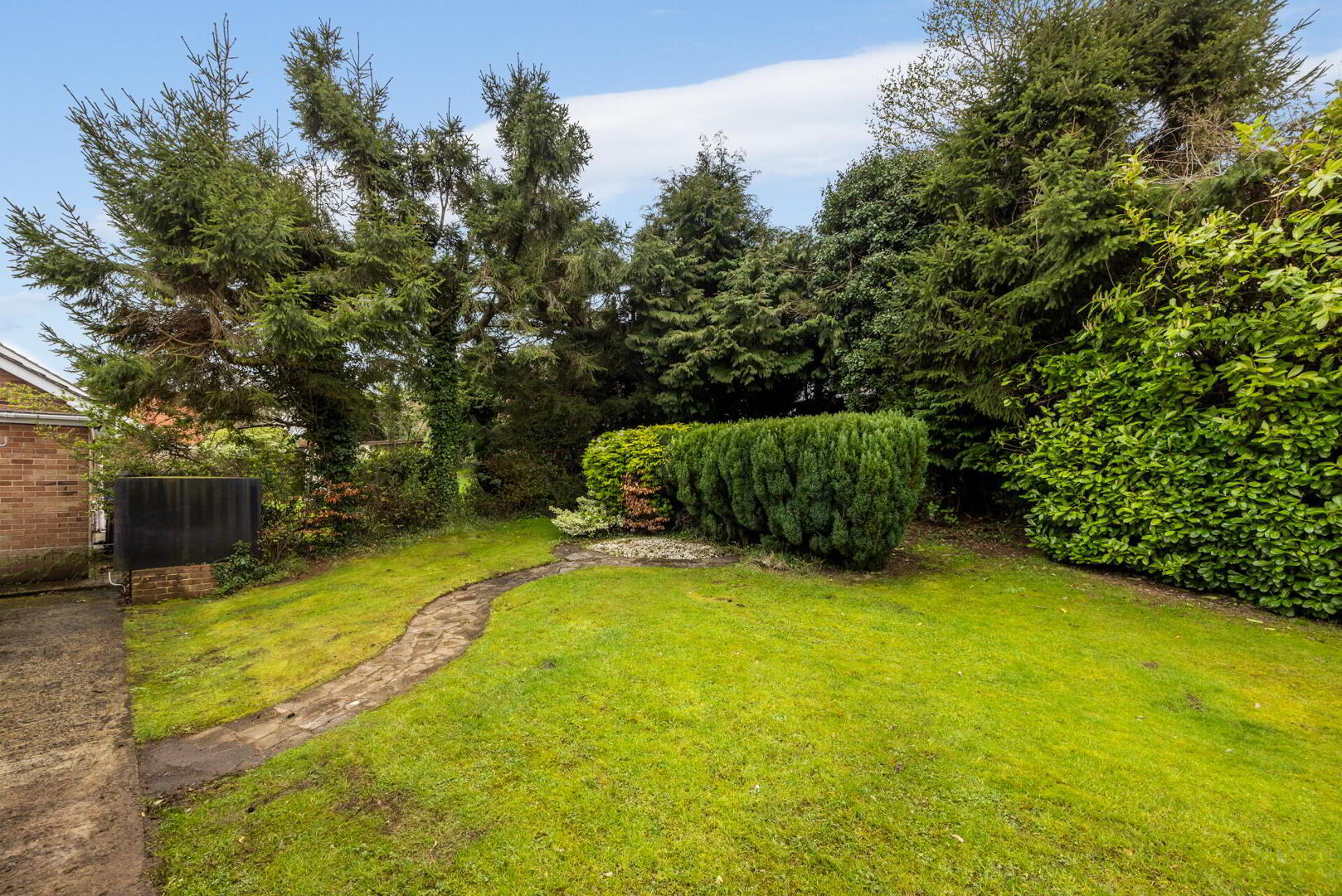 OUTSIDE Front garden in lawns with boundary fence and hedges, tarmac driveway with parking leading to attached garage. Private rear garden in lawns with mature boundary planting and trees.