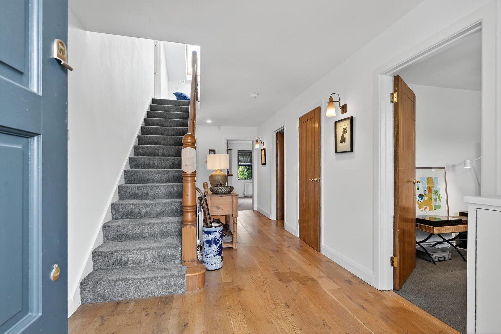 RECEPTION HALL Solid wood flooring, low voltage spotlights, storage cupboard and under stairs storage.