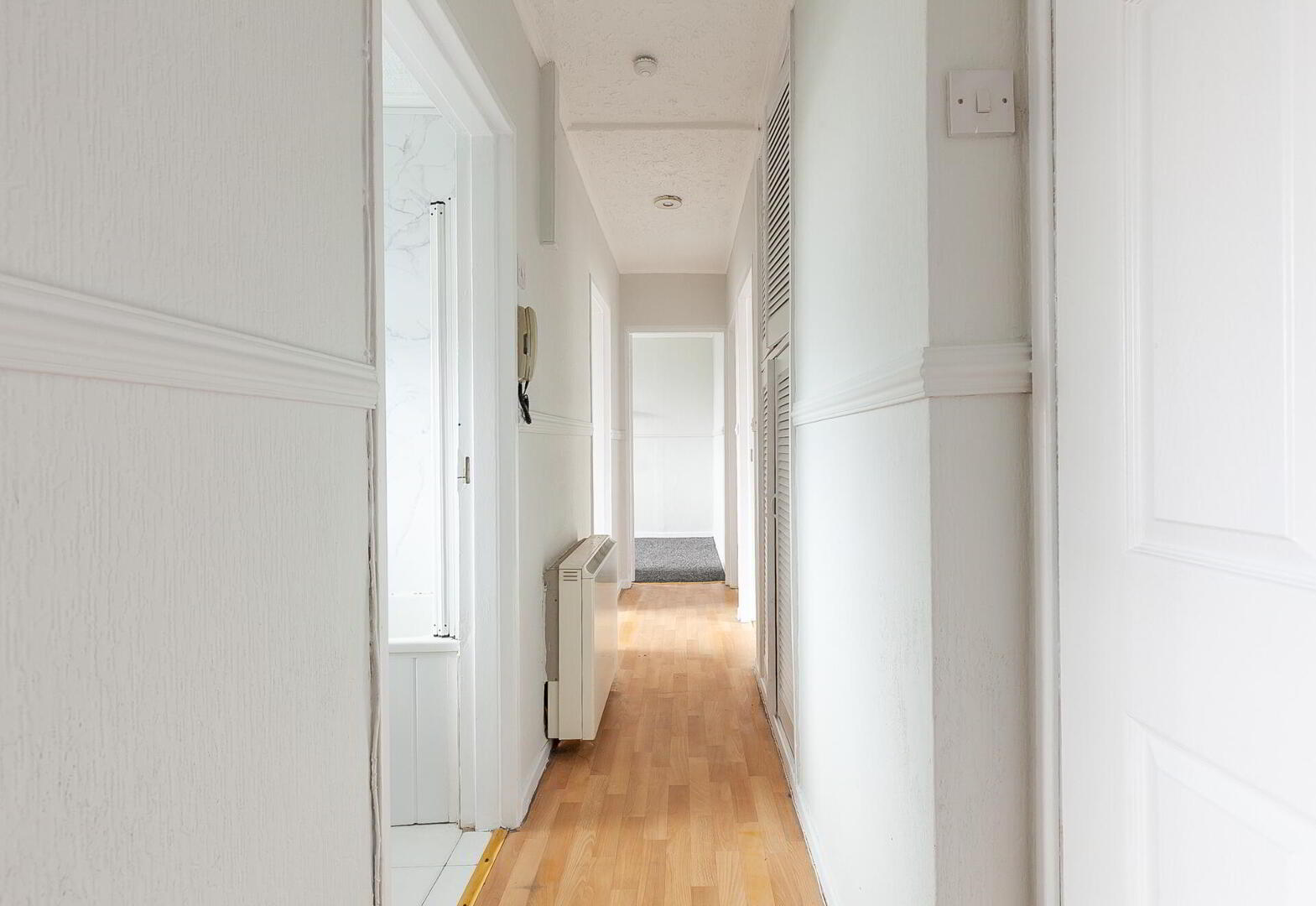 ENTRANCE HALL uPVC front door, wood strip flooring, cloakroom, storage.