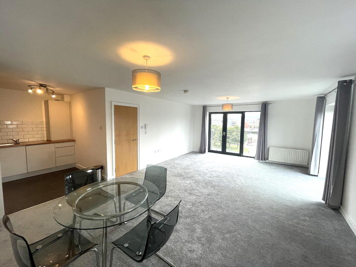 The apartment briefly comprises an impressive open plan living/dining area with two Juliette balconies & benefitting from fantastic views across the River Lagan and City Centre, through to fully fitted modern kitchen inclusive of appliances, two well-proportioned bedrooms (master with en-suite shower room) and a contemporary master bathroom.