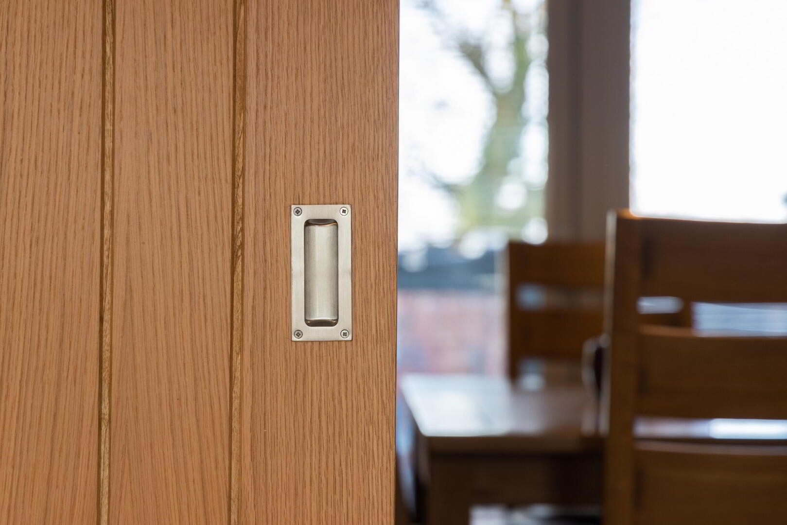 LOUNGE 19' 10" x 14' 9" (6.05m x 4.5m) Herringbone flooring, recessed low voltage spotlights, 9kw integrated contemporary wood burning stove, feature sliding doors leading to...
